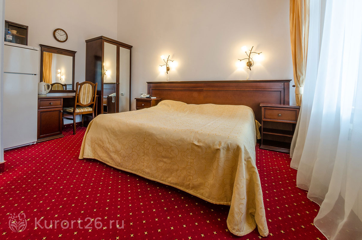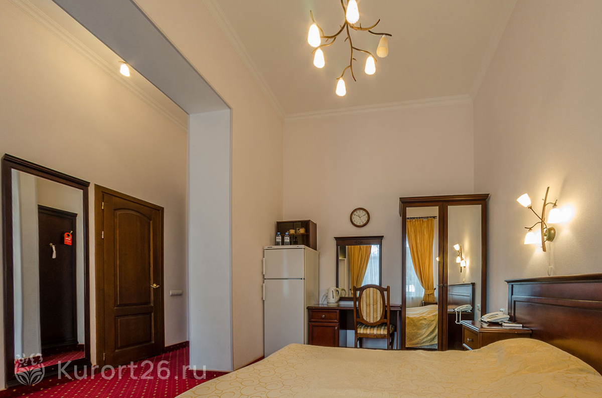 Поистине королевская территория пансионата, площадь которой составляет 8 000 квадратных метров, впечатлит гостей оригинальным ландшафтным дизайном. Несомненно, порадует посетителей и предлагаемая широкая палитра номеров — от стандартных одно- и двухместных до «студио» и «люкс». Просторные комнаты с высокими потолками и старинными балконами оснащены добротной мебелью из натурального дерева. Комфортные номера обладают индивидуально регулируемым отоплением и кондиционерами.