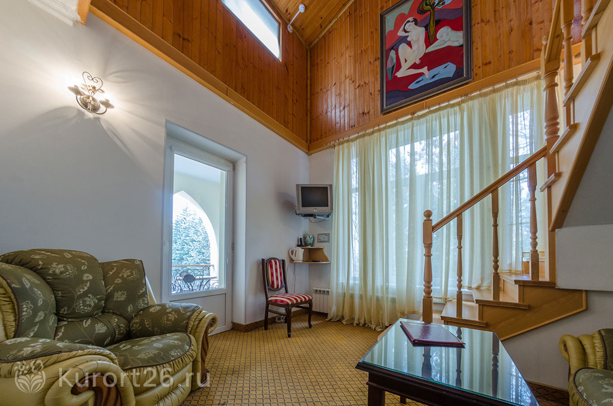 Для любителей провести время в роскошном уединении предлагается отдых в «Дворянском гнезде» — отдельном коттедже пансионата, с большим каминным залом, открытым бассейном, сауной, бильярдной, индивидуальной кухней.