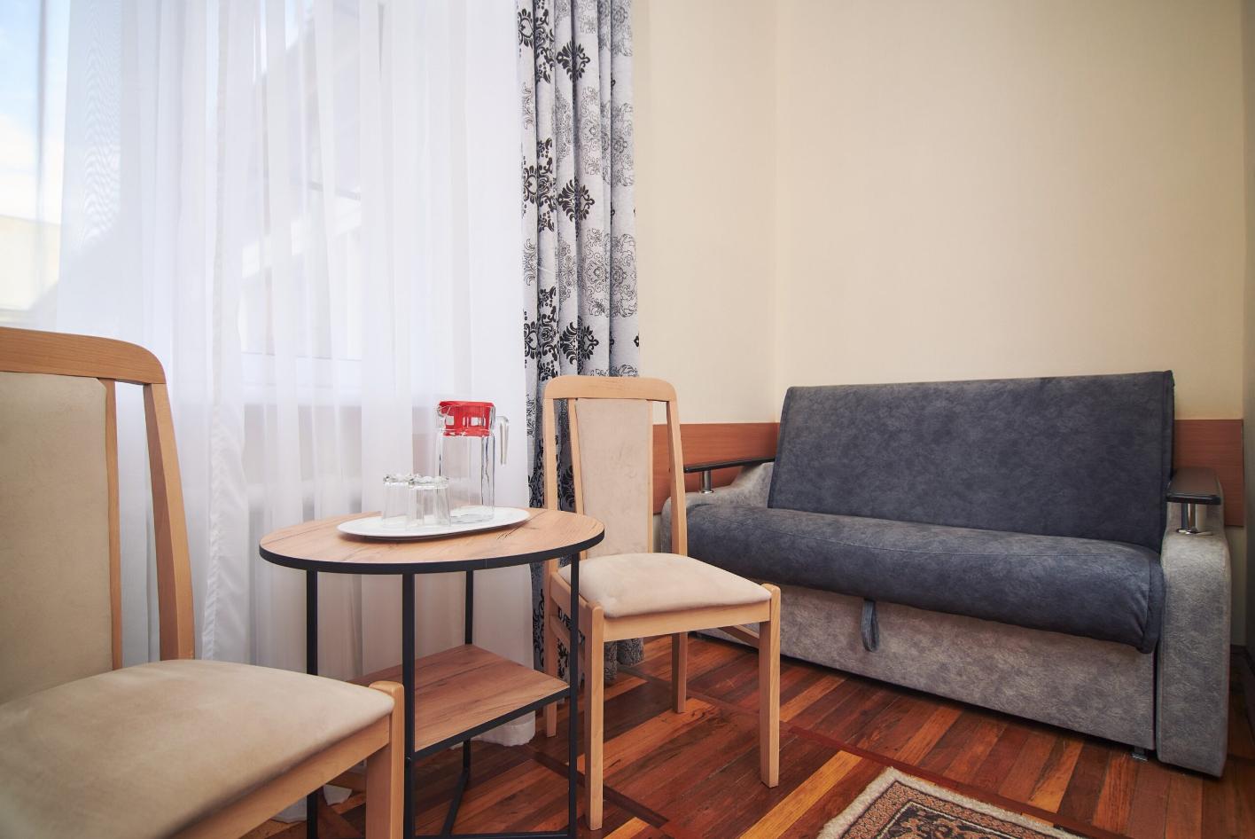 холодильник, кондиционер, телевизор, чайник, набор чайной посуды, балкон, душ, односпальная кровать: 2 шт, диван