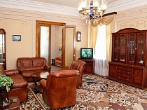 холодильник, телевизор, фен, гладильная доска, утюг, санузел с душевой кабиной, шкаф, односпальная кровать: 2 шт, электрочайник, стол, зеркало, прикроватная тумба, посуда, набор полотенец