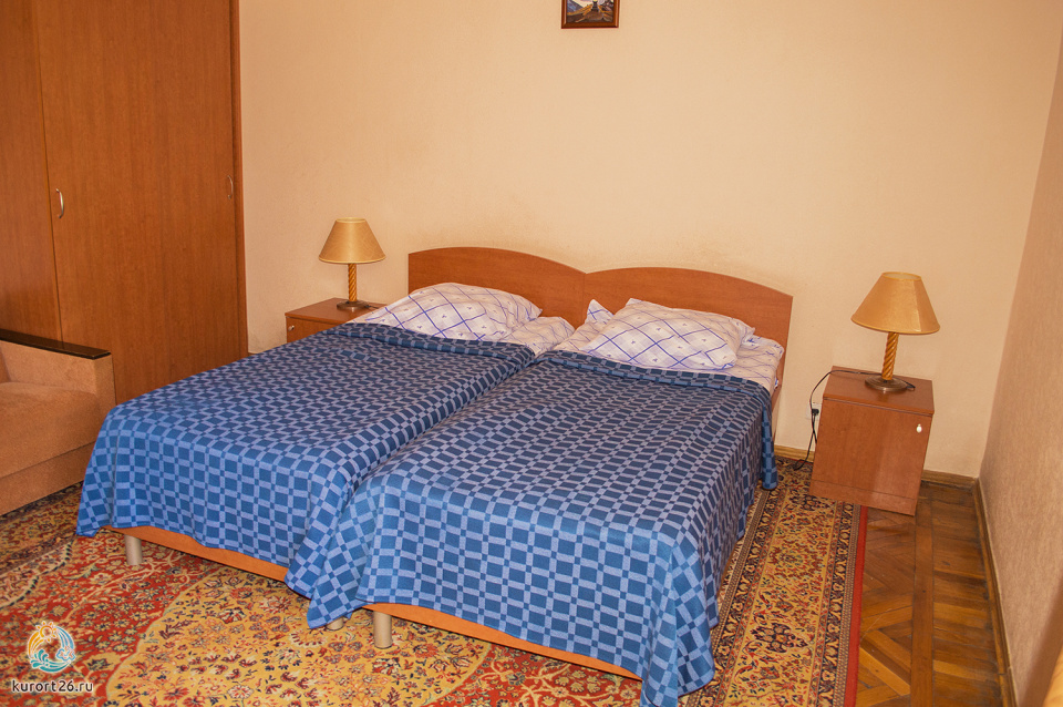 холодильник, фен, набор чайной посуды, гладильная доска, утюг, санузел с душевой кабиной, ванные принадлежности, тапочки, двуспальная кровать, шкаф, прикроватные тумбочки, диван, электрочайник, стол, зеркало, два телевизора, посуда, халаты, набор полотенец