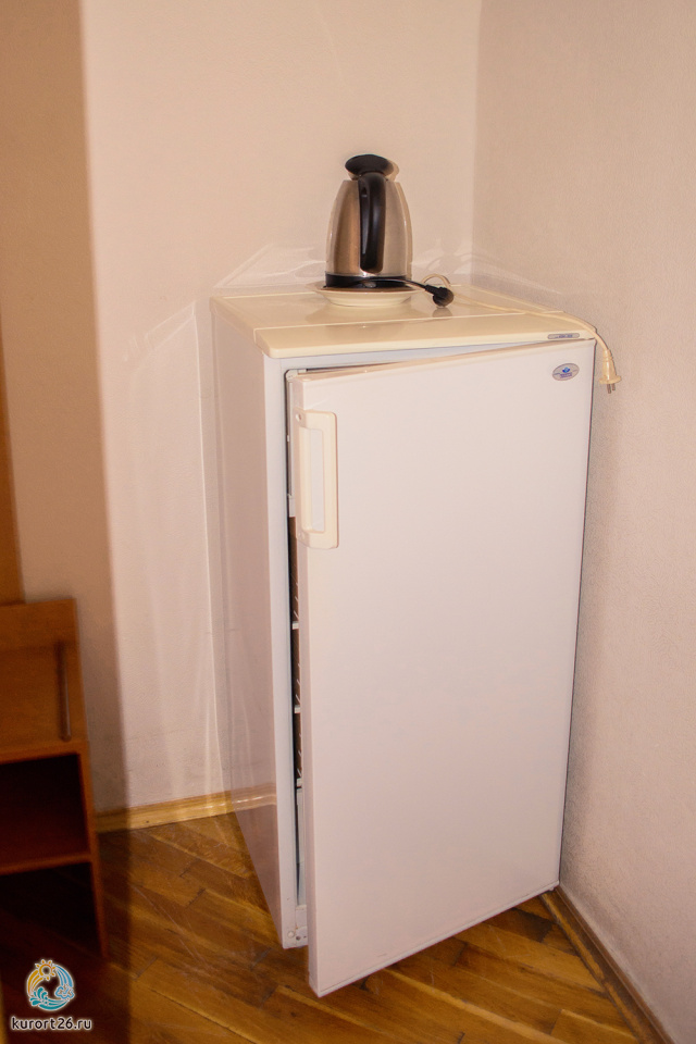 холодильник, телевизор, ванные принадлежности, шкаф, прикроватные тумбочки, односпальная кровать: 2 шт, электрочайник, стол, ванная комната