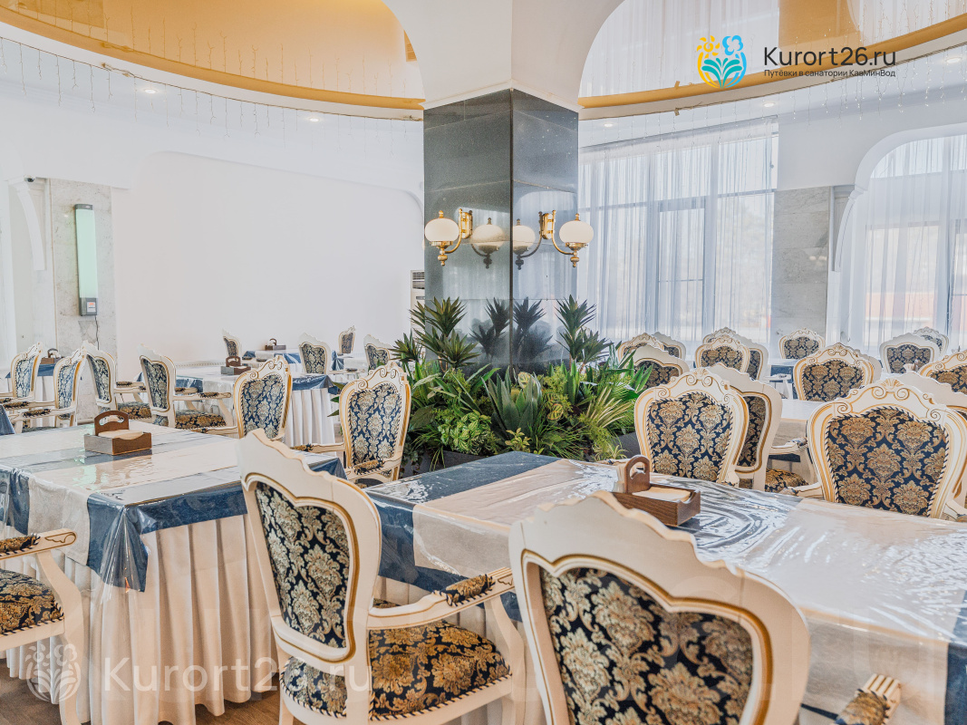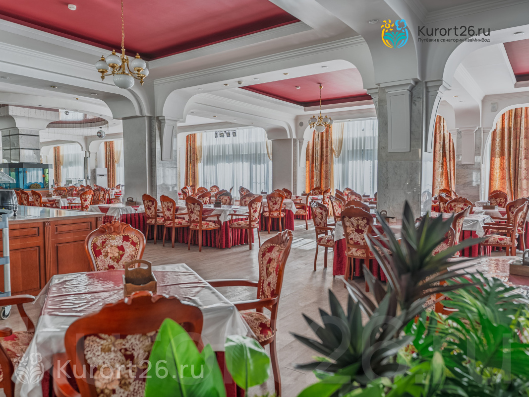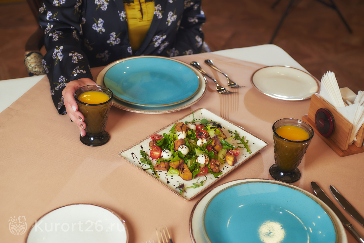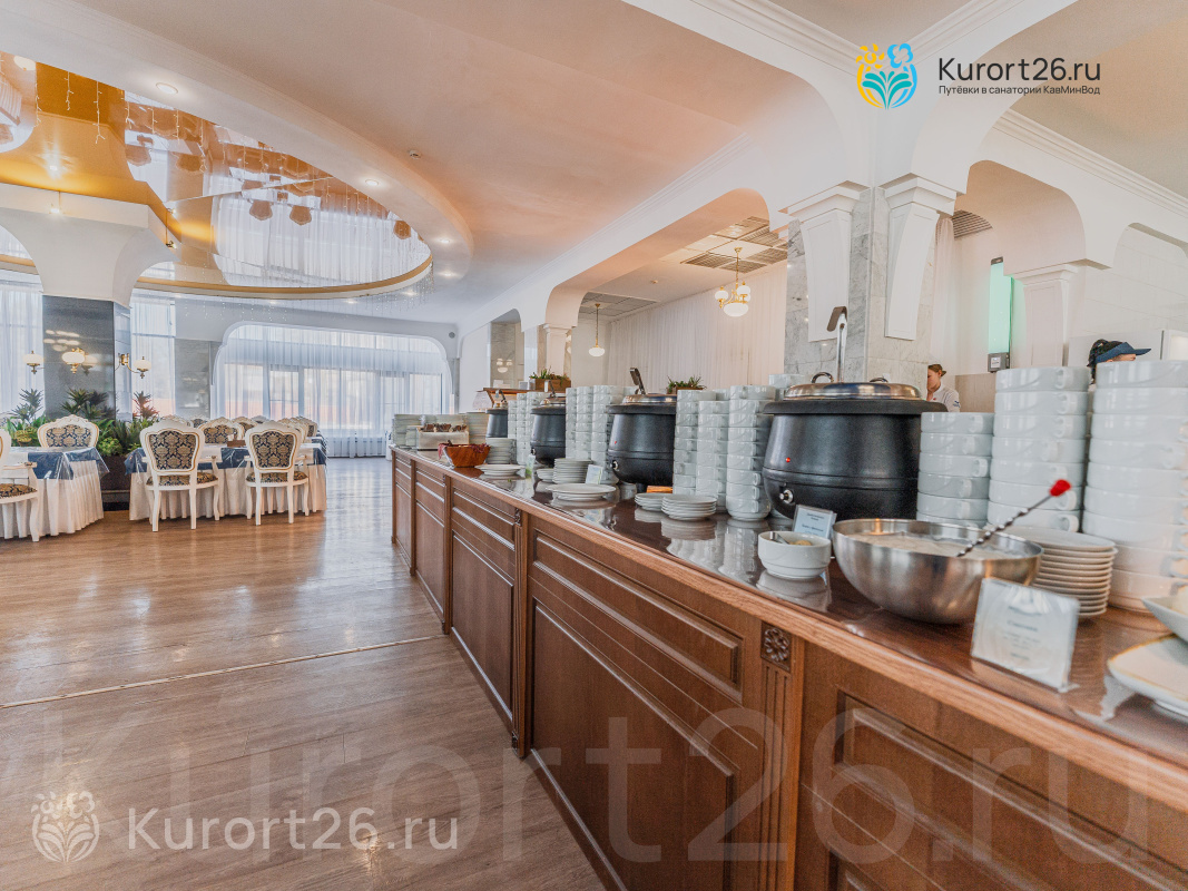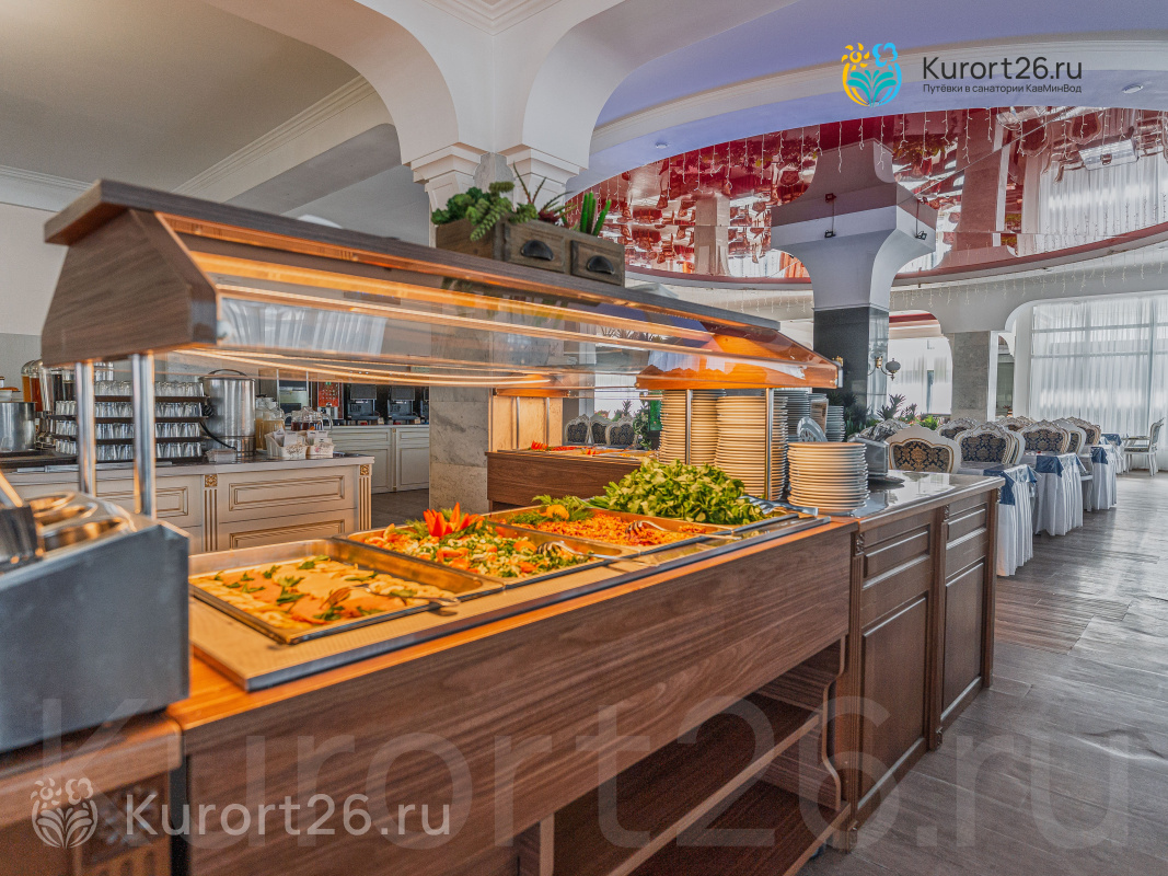 - Можно выбрать тип питания: шведский стол или меню-заказ. Два просторных обеденных зала. На линии представлены блюда по 15 диетам, выпечка из собственной пекарни. Дважды в неделю — тематические дни кавказской кухни и морепродуктов. Гостей в зале встречает лично шеф-повар, дежурит диетсестра