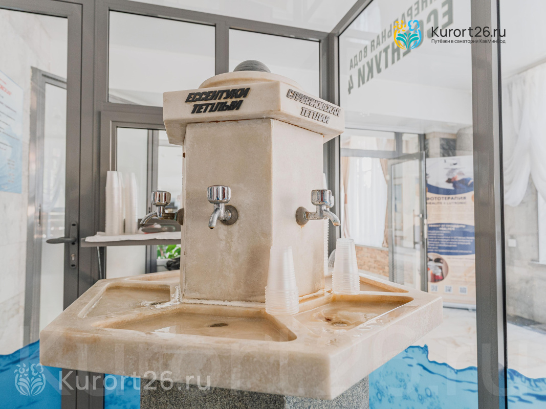 В холле санатория действует бювет с минеральными водами «Славяновская» и «Ессентуки 4».