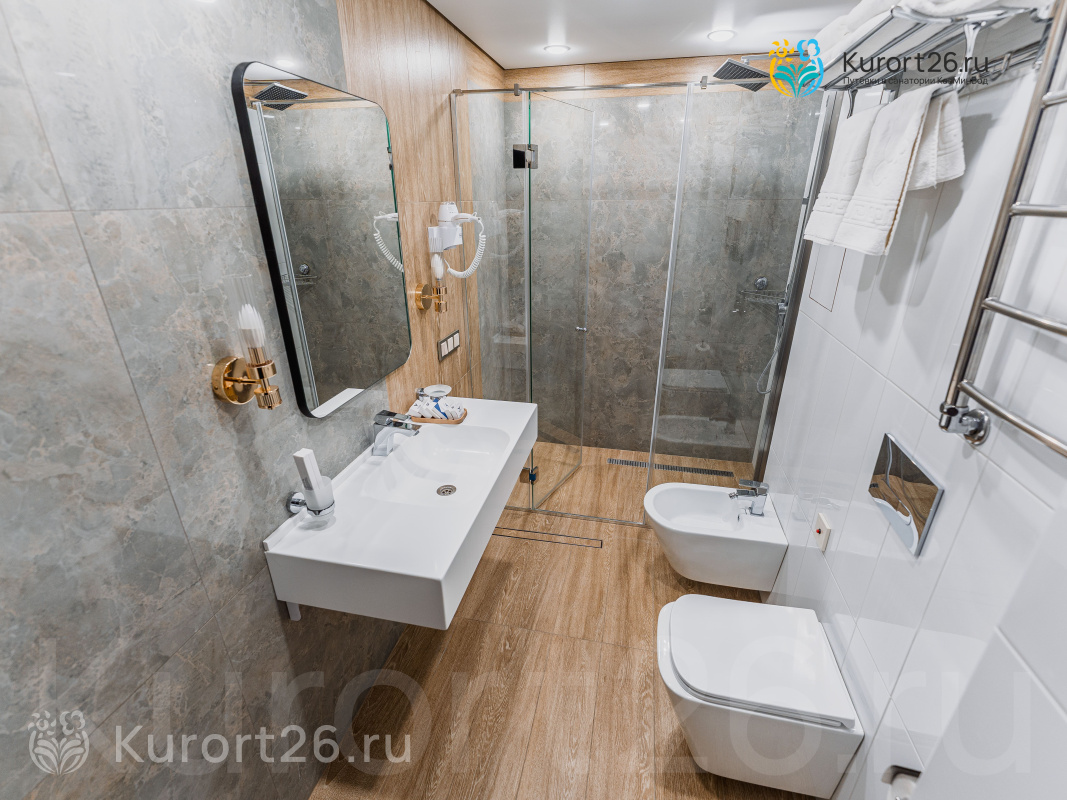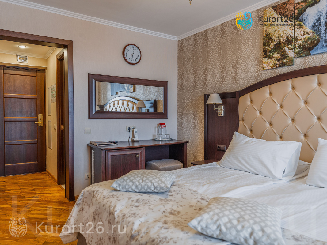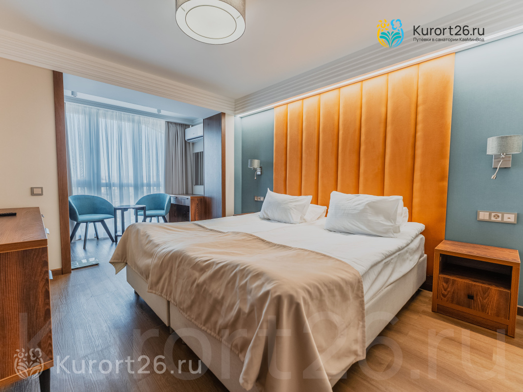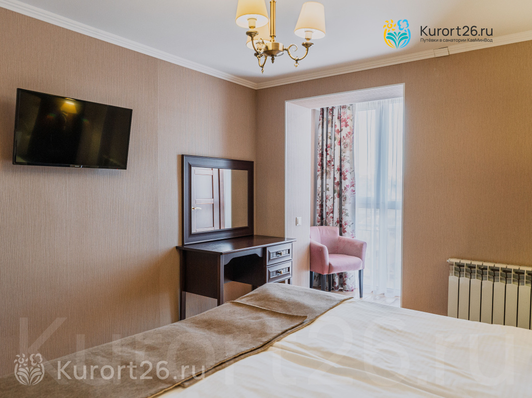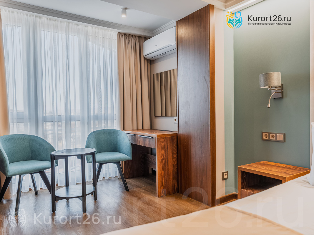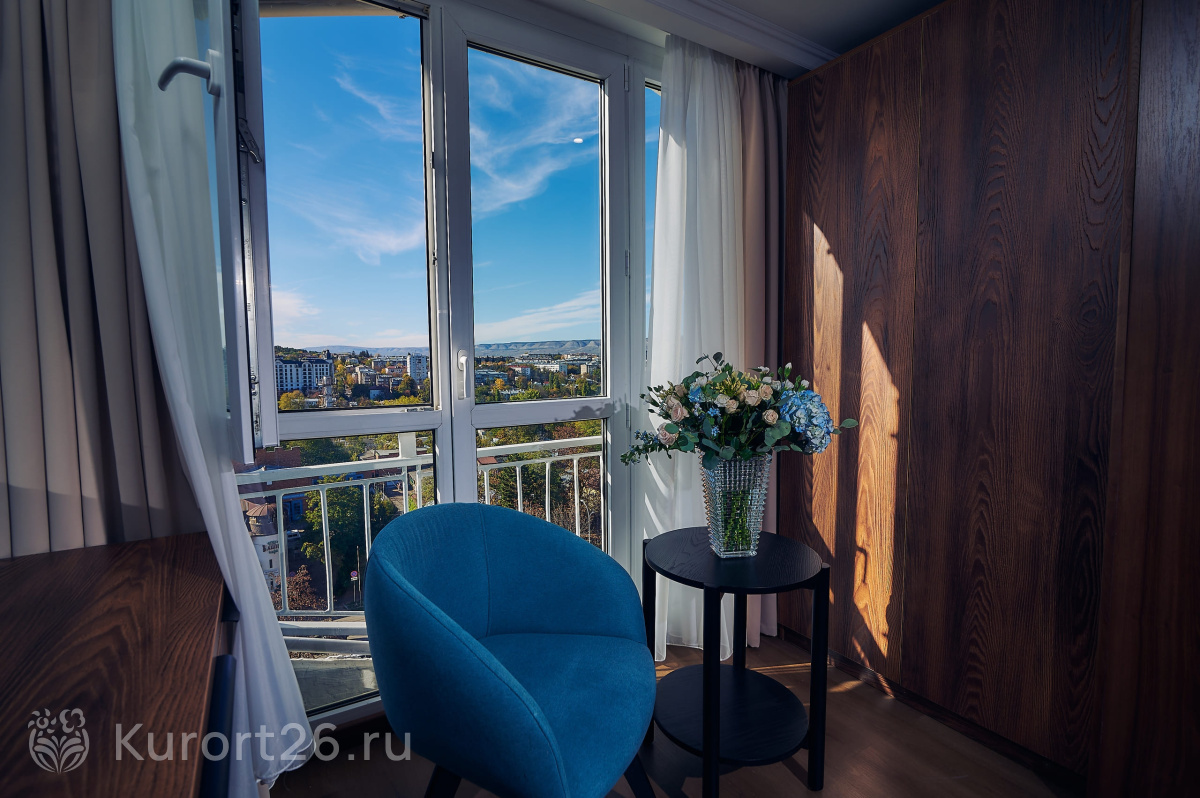 - Комфортные классические номера и апартаменты с кухней. Панорамные окна, вид на горные хребты и историческую часть Кисловодска с верхних этажей