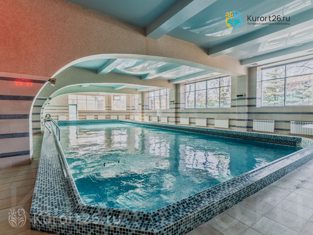 - Крытый бассейн 20×8 метров с каскадами, гидромассажем, подводным велотренажером. Работает без выходных с 07:00 до 21:00. В бассейне проводятся занятии аквааэробикой и ЛФК
