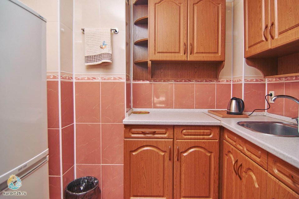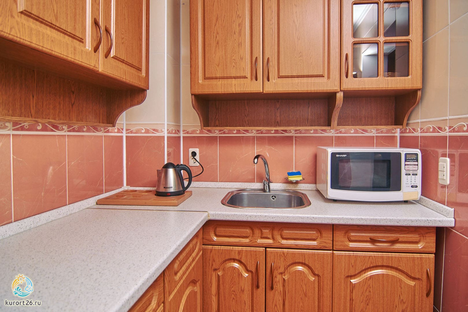 холодильник, кондиционер, телевизор, фен, сейф, телефон, халат, тапочки, двуспальная кровать, микроволновая печь, кресло, журнальный столик, набор косметических средств, набор полотенец, Рабочая зона с письменным столом и удобным стулом, Душевая кабина, кухонное оборудование, ванная, чайный набор, биде