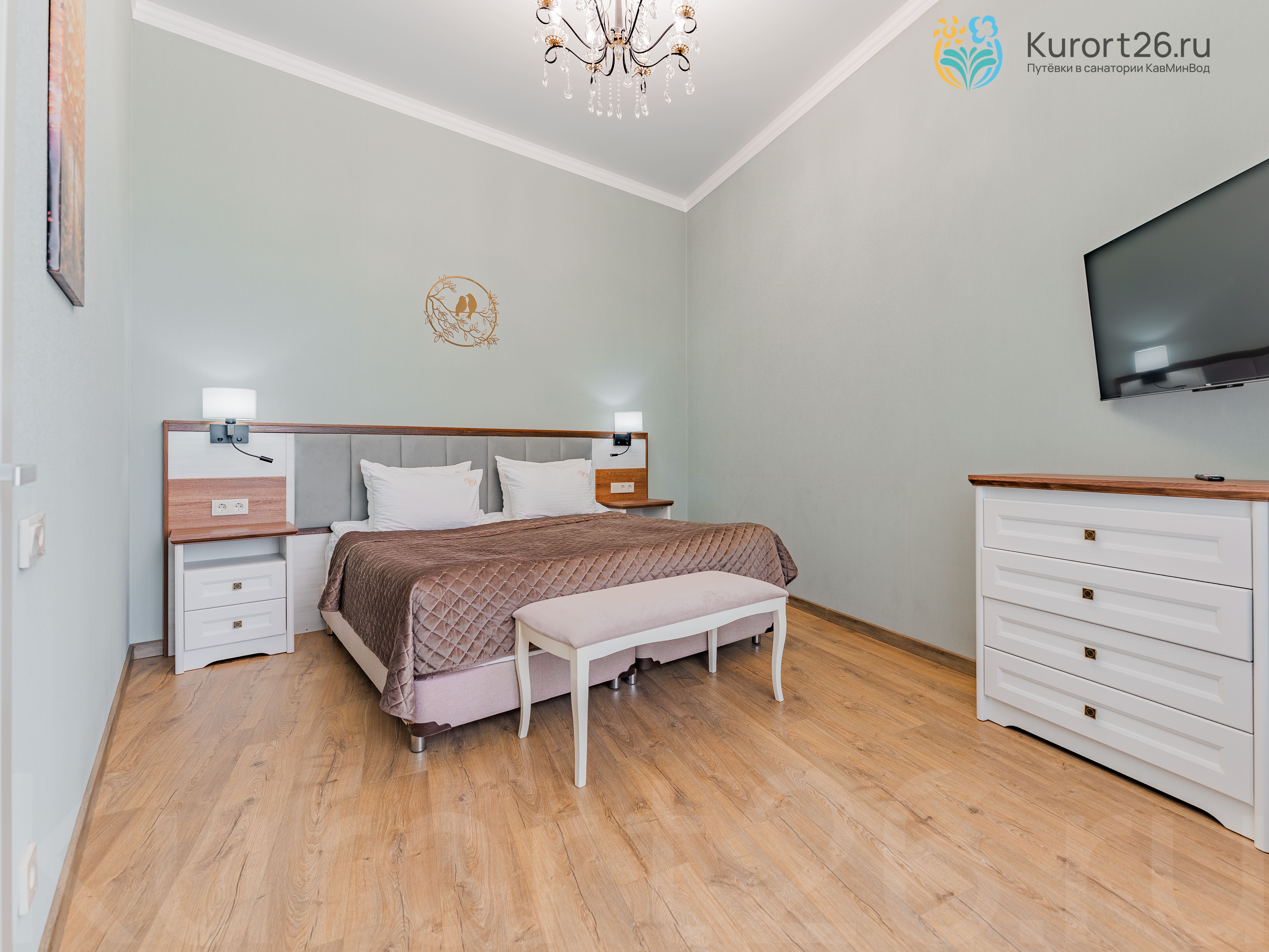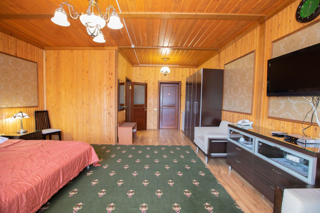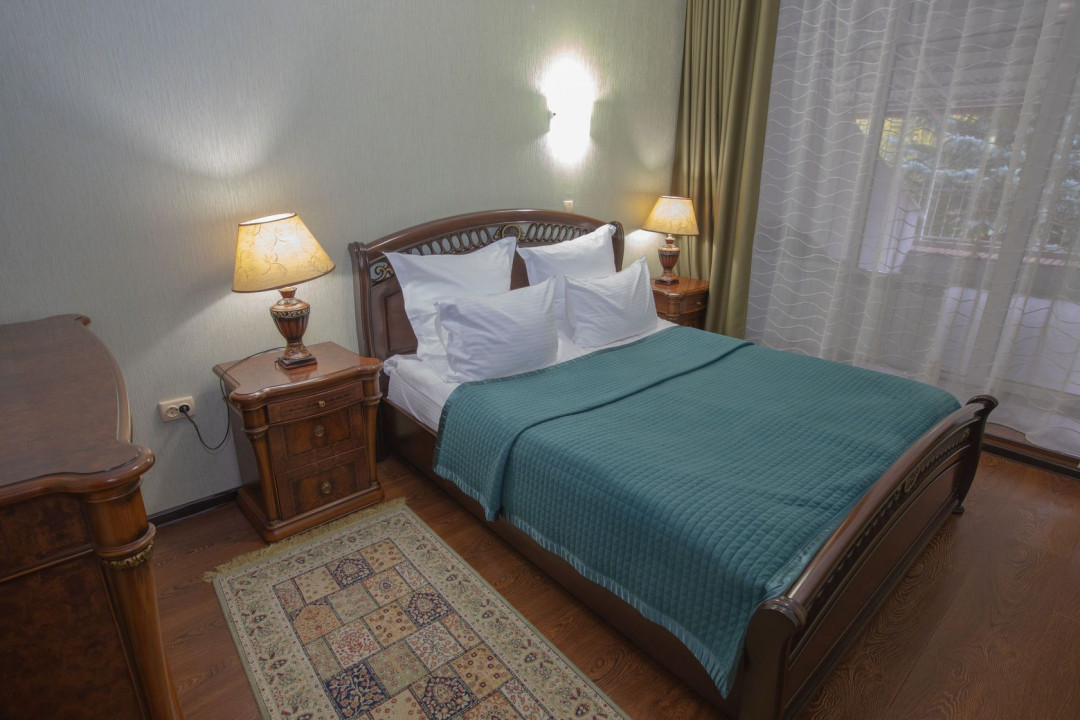 холодильник, телевизор, интернет в номере, санузел с душевой кабиной, ванные принадлежности, двуспальная кровать, шкаф, набор мягкой мебели, прикроватные тумбочки, электрочайник, стол