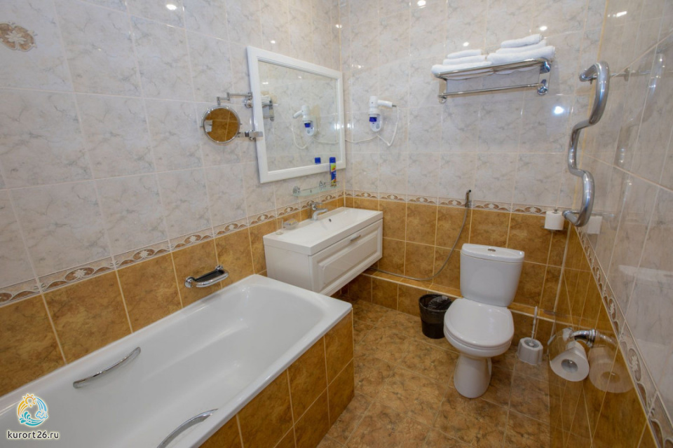 холодильник, телевизор, интернет в номере, санузел с душевой кабиной, ванные принадлежности, двуспальная кровать, шкаф, набор мягкой мебели, прикроватные тумбочки, электрочайник, стол