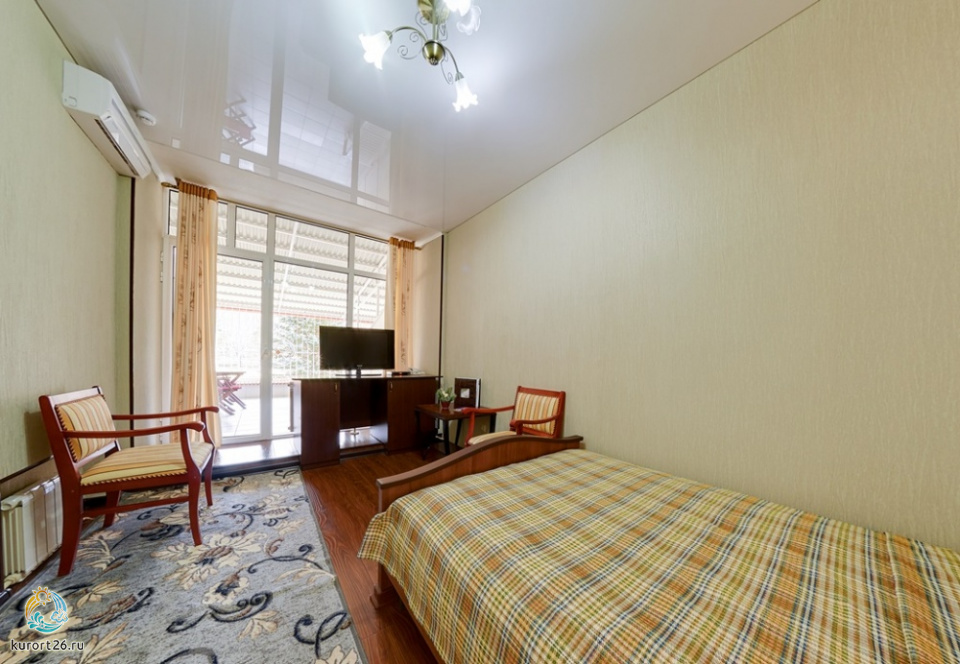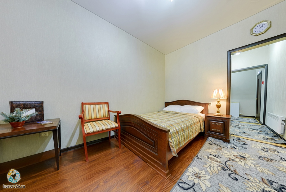 холодильник, телевизор, интернет в номере, санузел с душевой кабиной, ванные принадлежности, двуспальная кровать, шкаф, набор мягкой мебели, прикроватные тумбочки, электрочайник, стол