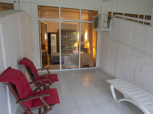 холодильник, кондиционер, балкон, сейф, интернет в номере, санузел с душевой кабиной, ванные принадлежности, двуспальная кровать, шкаф, прикроватные тумбочки, электрочайник, стол, кресло, два телевизора