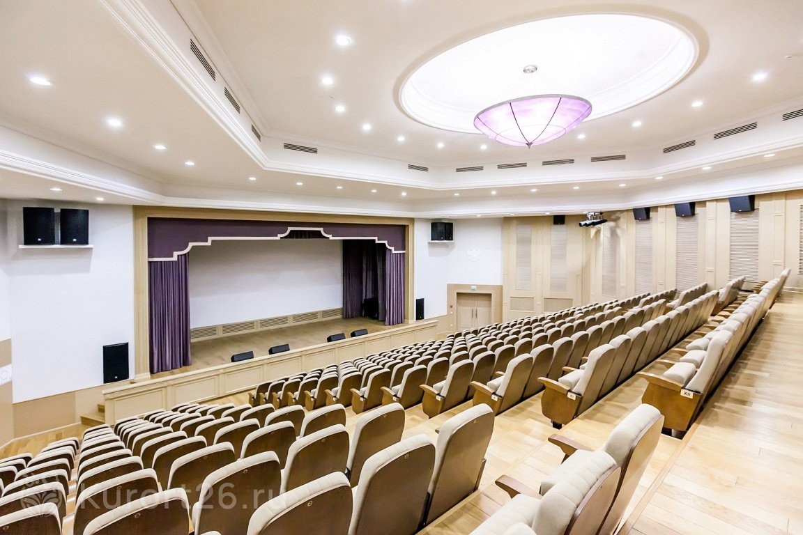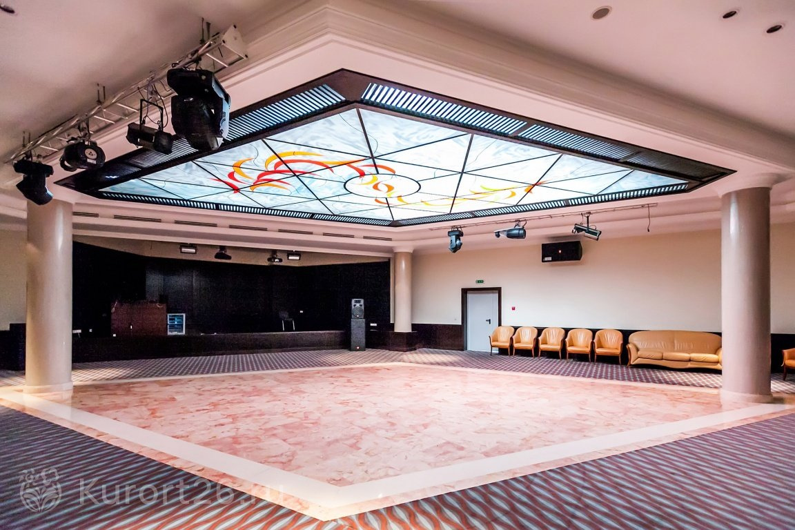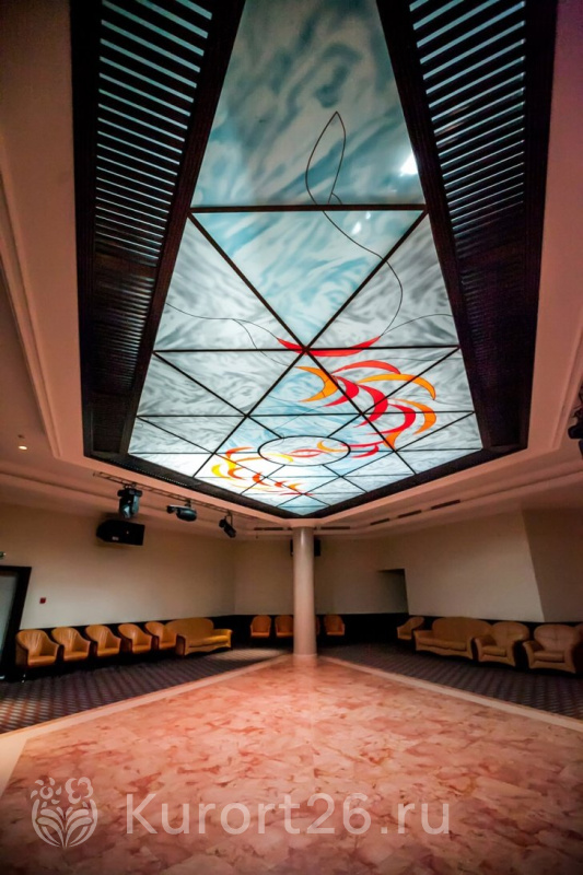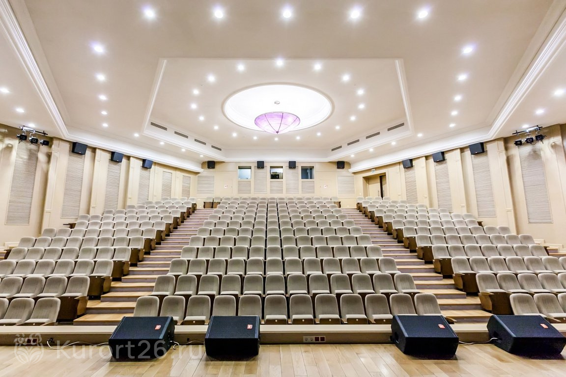 Досуг санатория — это ещё и танцевальная площадка, и кинозал на 300 мест с системой объёмного звучания. Зал активно используется во время просмотра фильмов или концертных выступлений.