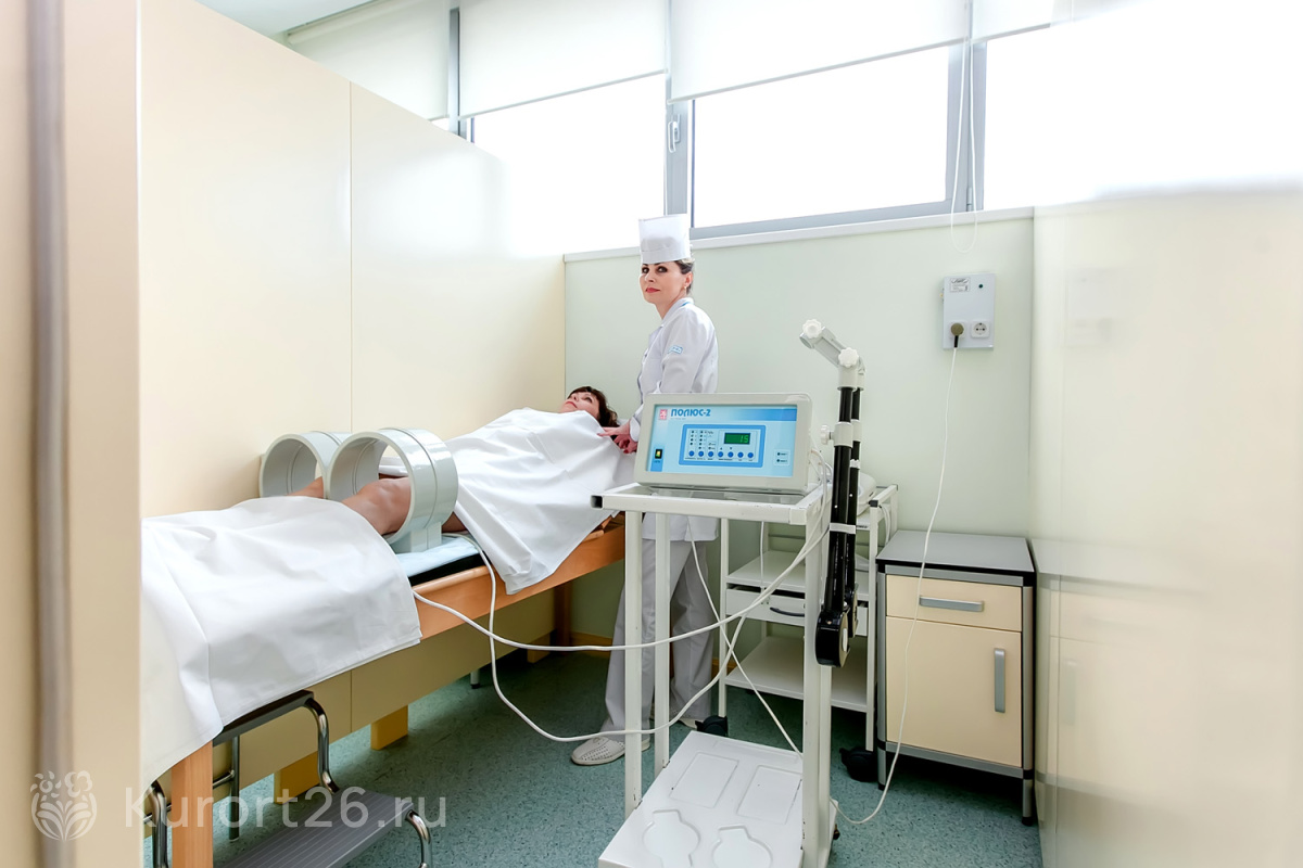- Более 20 видов физиотерапии. Грязелечение: аппликации и электрогрязь. Лечебные души, ванны с природной минеральной водой, йодобромные, хвойные, жемчужные, солодковые. Соляная пещера. Ингаляции. Мануальная терапия и классический массаж