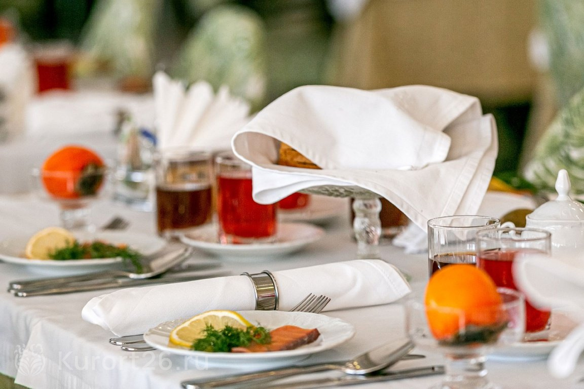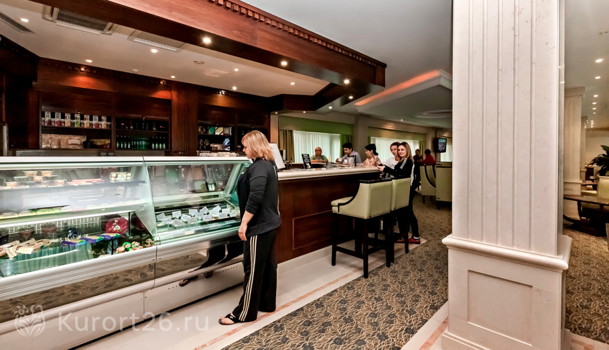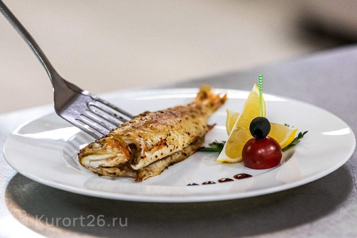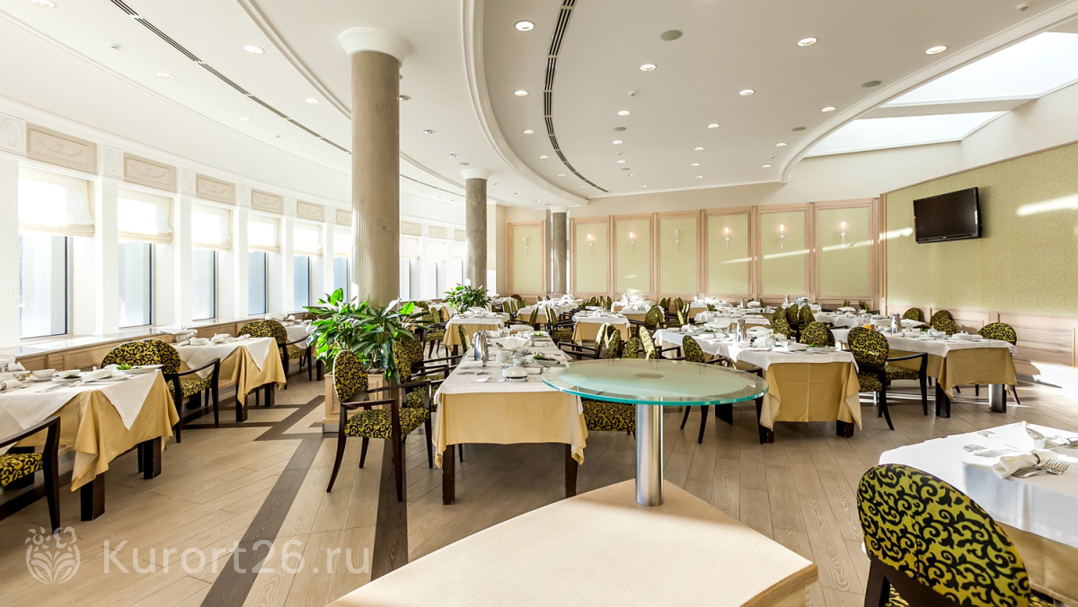 - В путёвку включено трёхразовое питание «меню-заказ». Есть отдельный зал для гостей номеров «Люкс». Индивидуальное меню по запросу: раздельное, вегетарианское. На территории работают три бара и ресторан «Империал»
