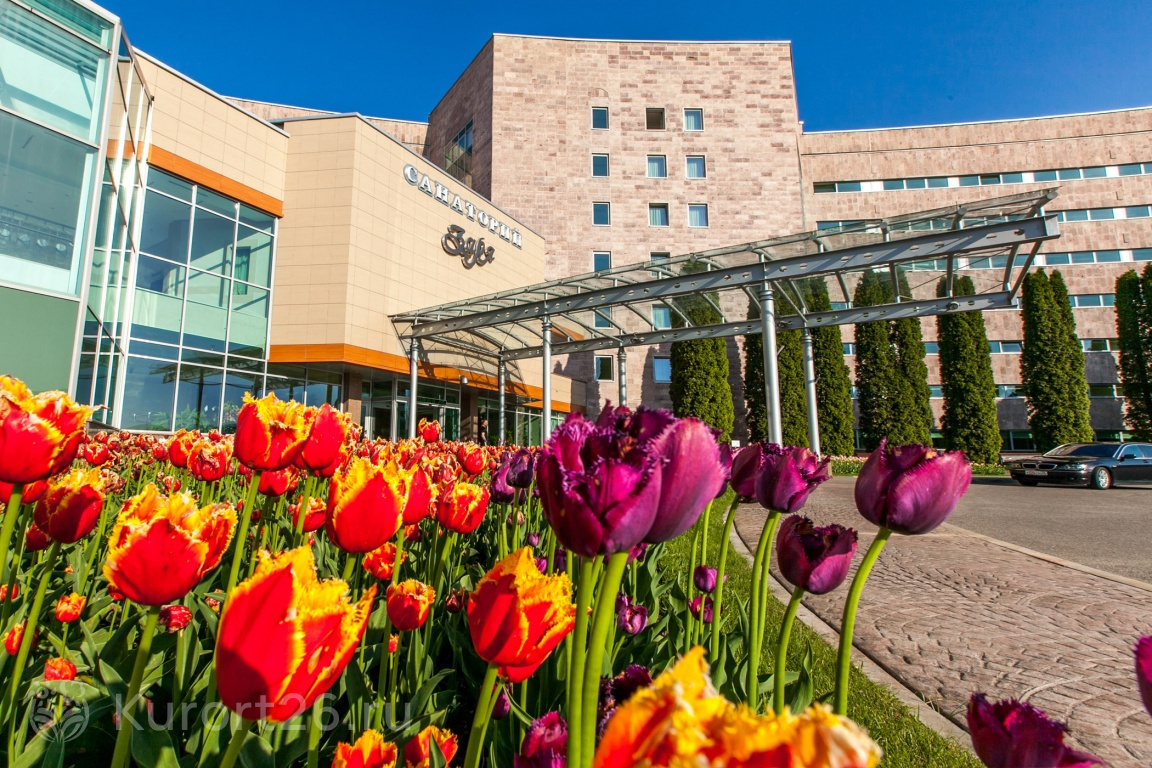 Санаторий «Заря» располагается в Верхней части Курортного парка Кисловодска. Вы сможете наслаждаться пешими прогулками по самой зелёной и цветущей территории курорта.