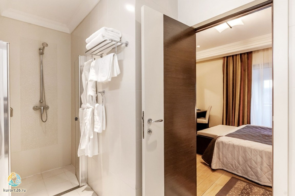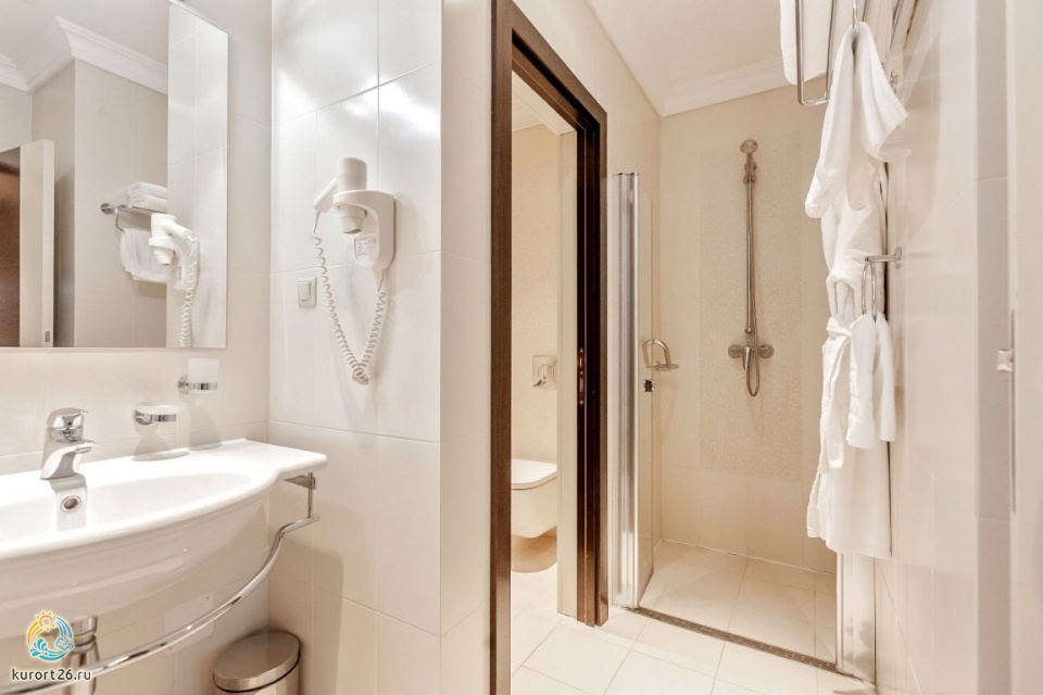 холодильник, кондиционер, телевизор, фен, набор чайной посуды, балкон, сейф, телефон, санузел с душевой кабиной, ванные принадлежности, двуспальная кровать, шкаф, прикроватные тумбочки, электрочайник, набор уличной мебели, спутниковые каналы, гигиенические принадлежности, письменный набор, швейный набор