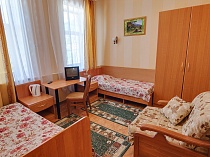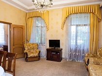 холодильник, телевизор, чайник, балкон, душ, набор мягкой мебели, две кровати