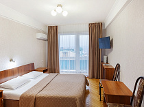 холодильник, кондиционер, чайник, фен, балкон, интернет в номере, санузел с душевой кабиной, ванные принадлежности, шкаф, односпальная кровать, зеркало, журнальный столик, набор полотенец