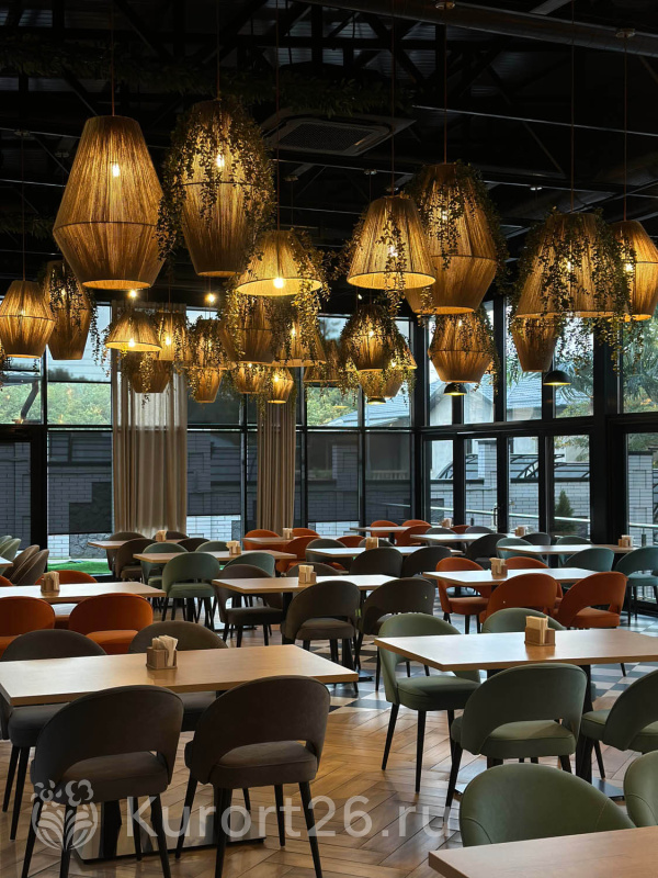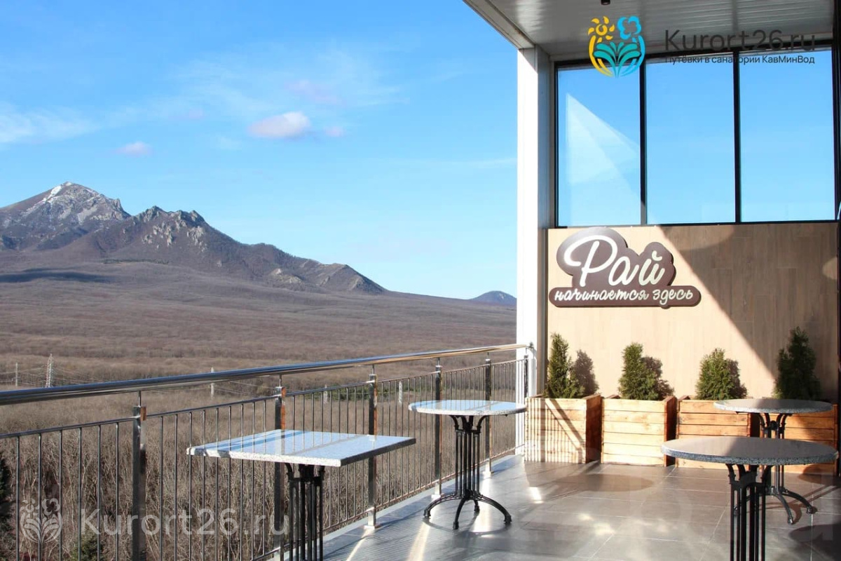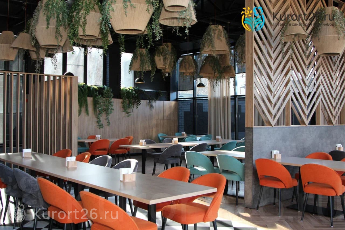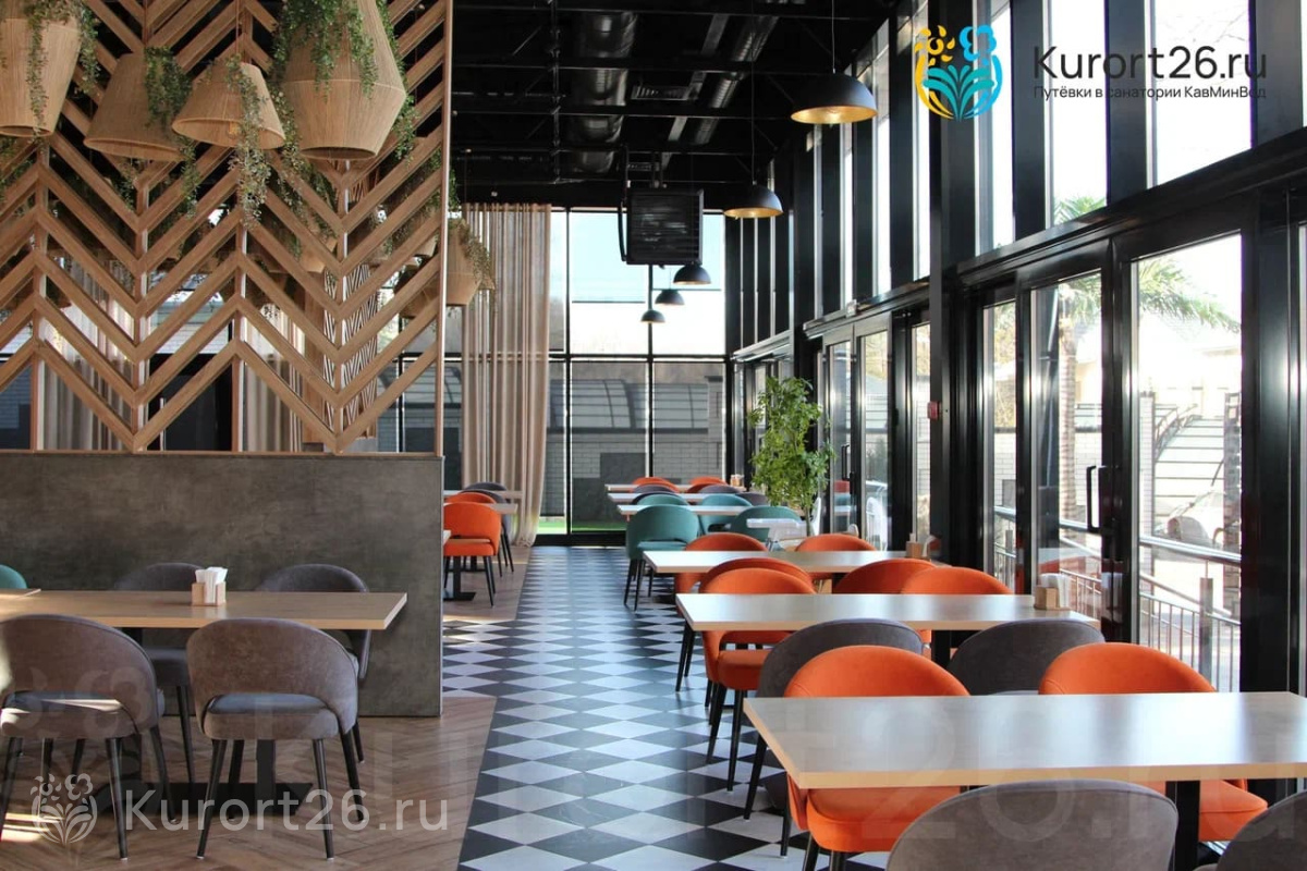 В цену проживания включён завтрак «шведский стол», который сервируется на красивой террасе. На 9 этаже санатория расположен уютный ресторан, рассчитанный всего на 30 мест. Из окон открывается головокружительный вид на лесопарк и гору Бештау.