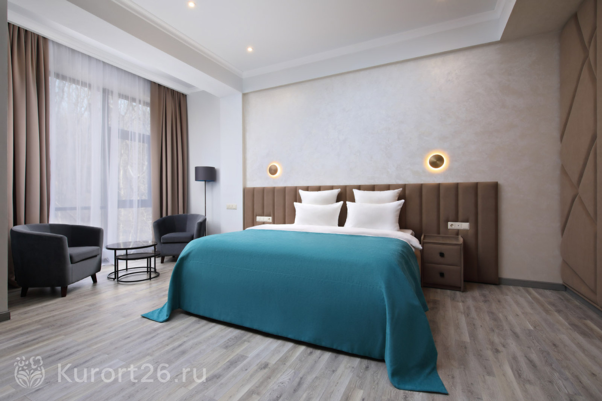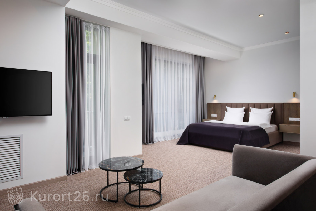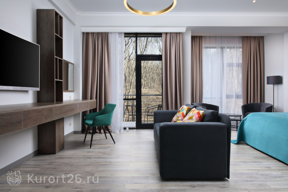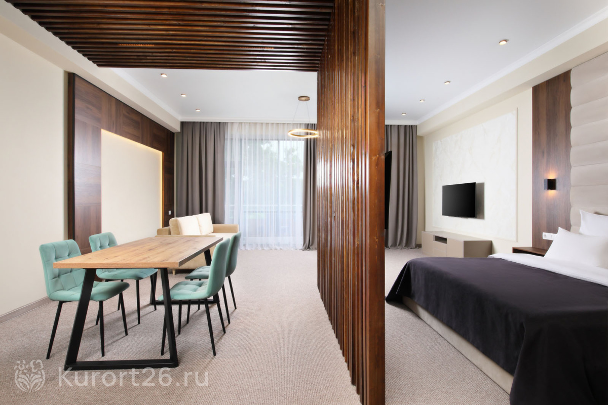 Здравница новая, с просторными номерами разных категорий: от «Стандартов» до «Люксов». В номерах панорамное остекление, есть номера с балконами: здесь приятно провести вечер или поужинать, заказав блюда из ресторана. Также можно выбрать уютный номер в коттедже. Для гостей с маленькими детьми по запросу предоставляются детские кроватки и стульчики.