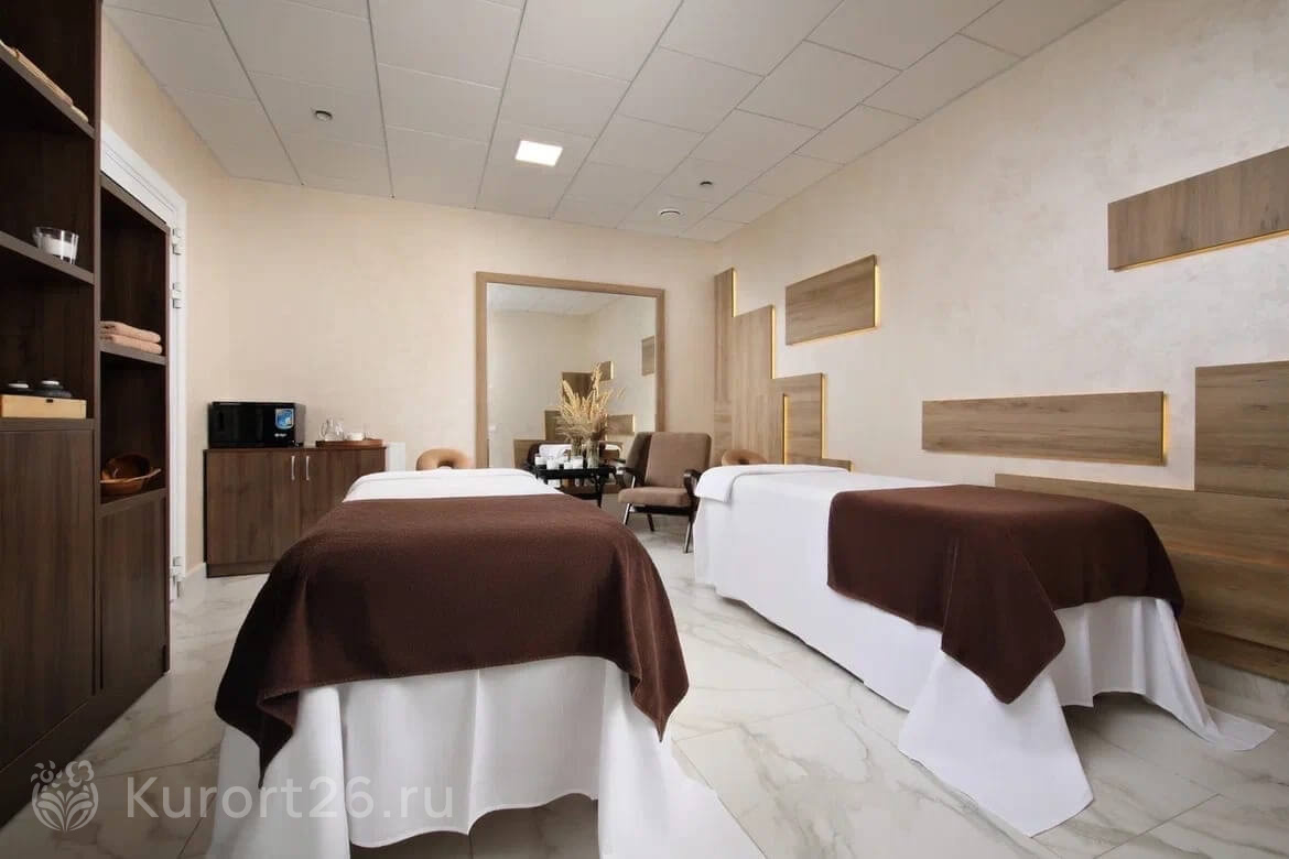 Гостей ждёт термальная зона с бассейном, финской сауной и турецким хамамом. Для тех, кто хочет окунуться в мир красоты и заботы о себе — большой выбор массажей и спа-процедур:
