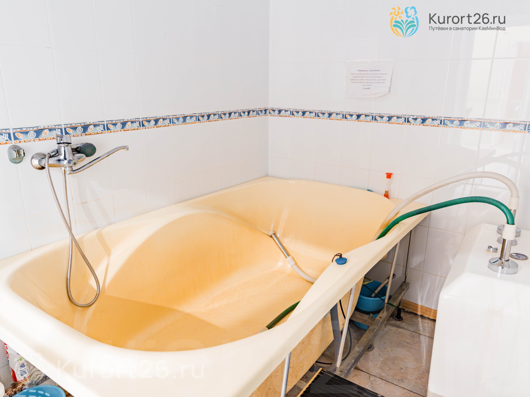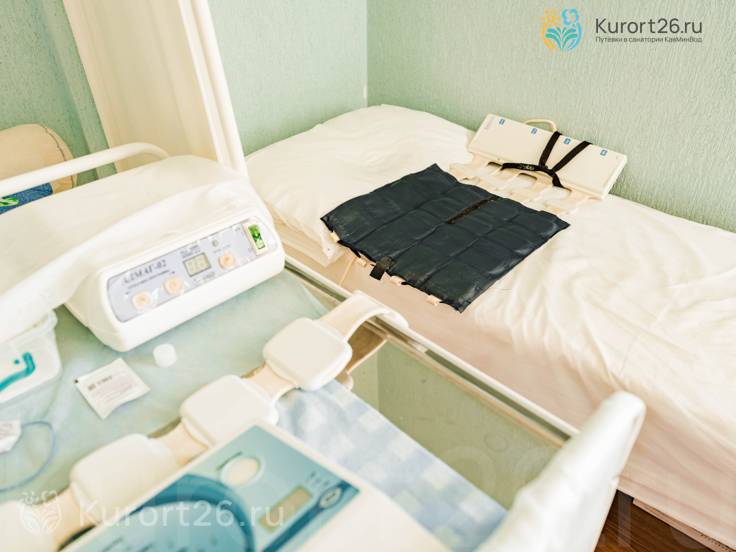 - Ведет прием врач-терапевт. Ключевые санаторные процедуры: грязелечение, лечебные ванны, подводный душ-массаж, магнито- и лазеротерапия, ингаляции с углекисло-сероводородной водой, массаж