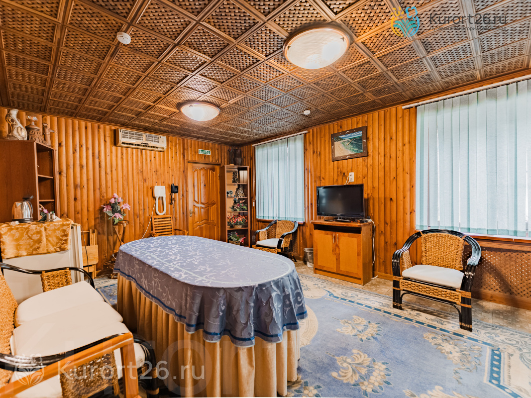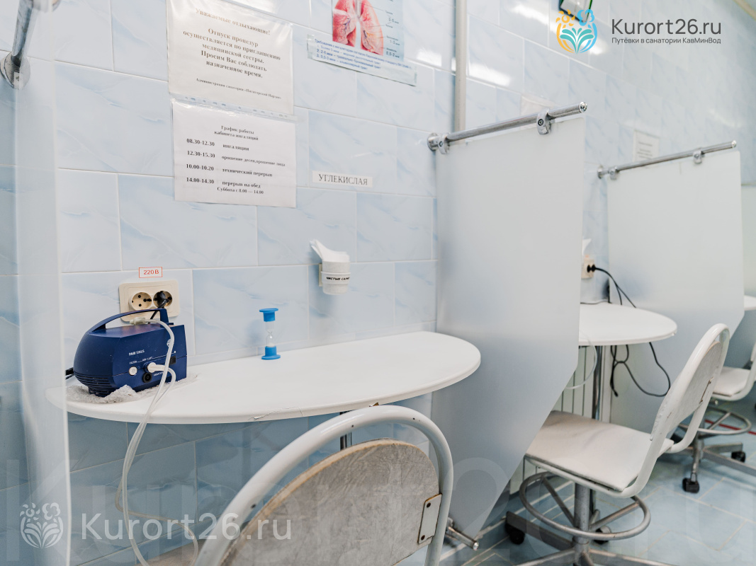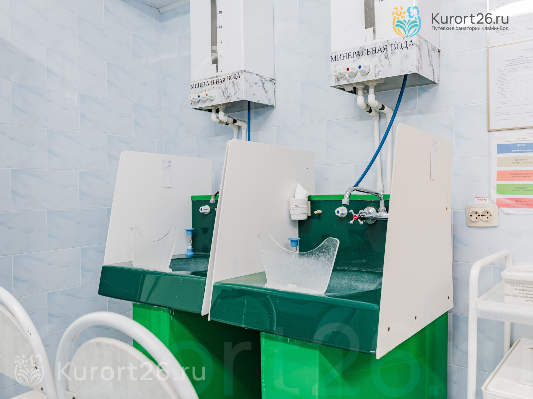 В здравнице есть собственное радоновое отделение и бювет с минеральной водой «Машук - 19», а процедурные кабинеты работают и в праздники и в выходные, некоторые — с 08:00 по 20:00. Все процедуры отпускают в одном корпусе — это очень удобно.