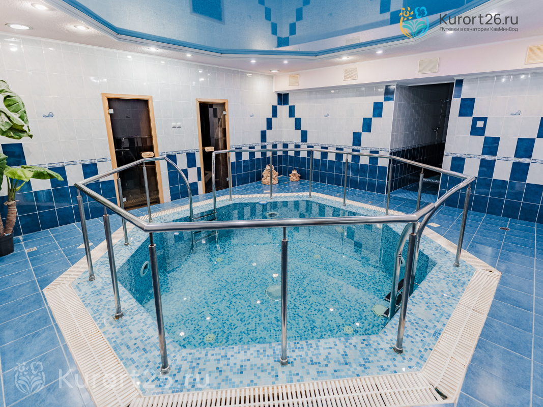 - Открытый бассейн 16 м с подогревом воды, гидромассажем, водопадами и противотоком. «Пятигорский нарзан» — единственный санаторий в Пятигорске с открытым бассейном