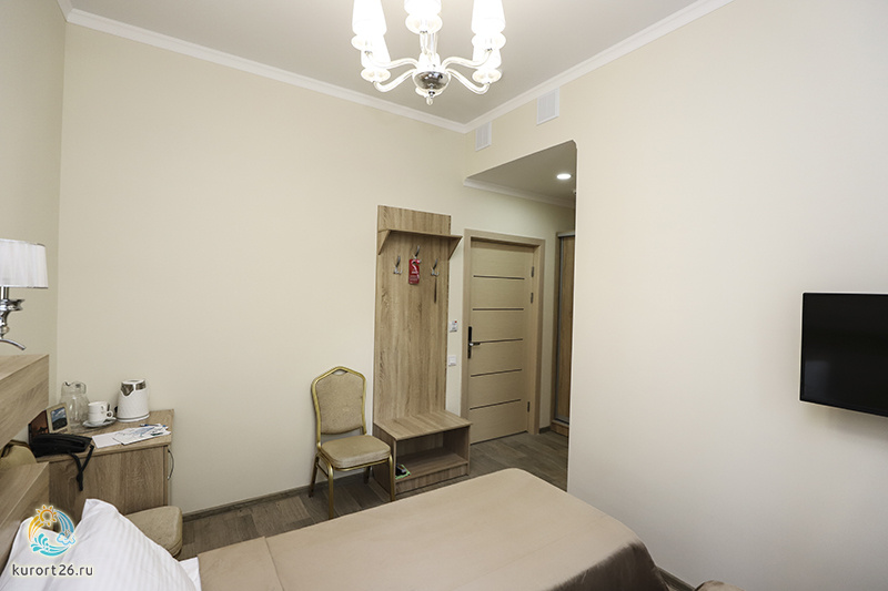 холодильник, кондиционер, телевизор, фен, балкон, душ, шкаф, односпальная кровать, электрочайник, кресло-кровать, прикроватная тумба