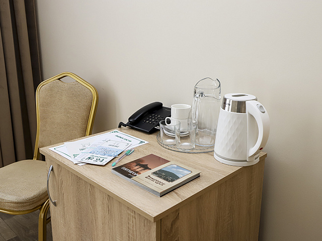 холодильник, кондиционер, телевизор, фен, балкон, душ, шкаф, односпальная кровать, электрочайник, кресло-кровать, прикроватная тумба