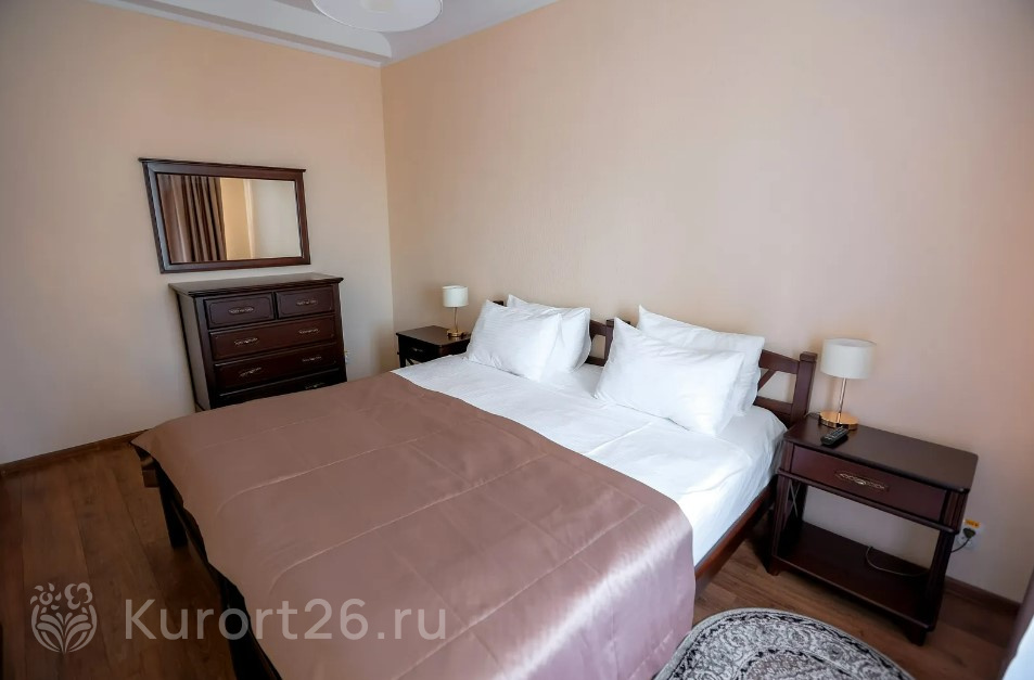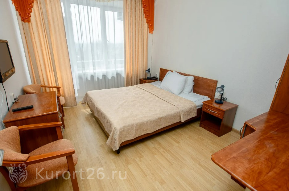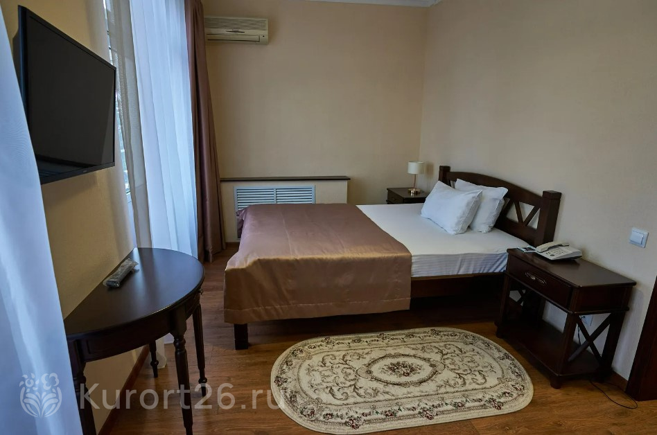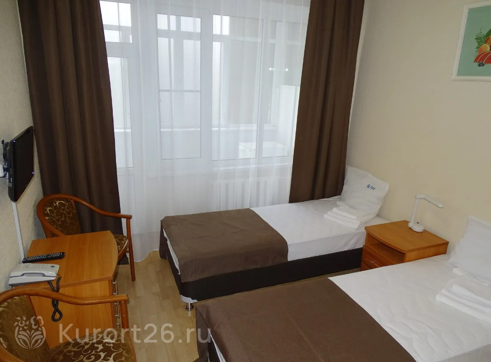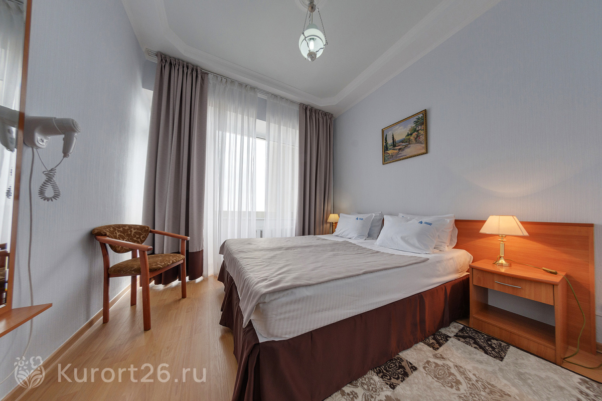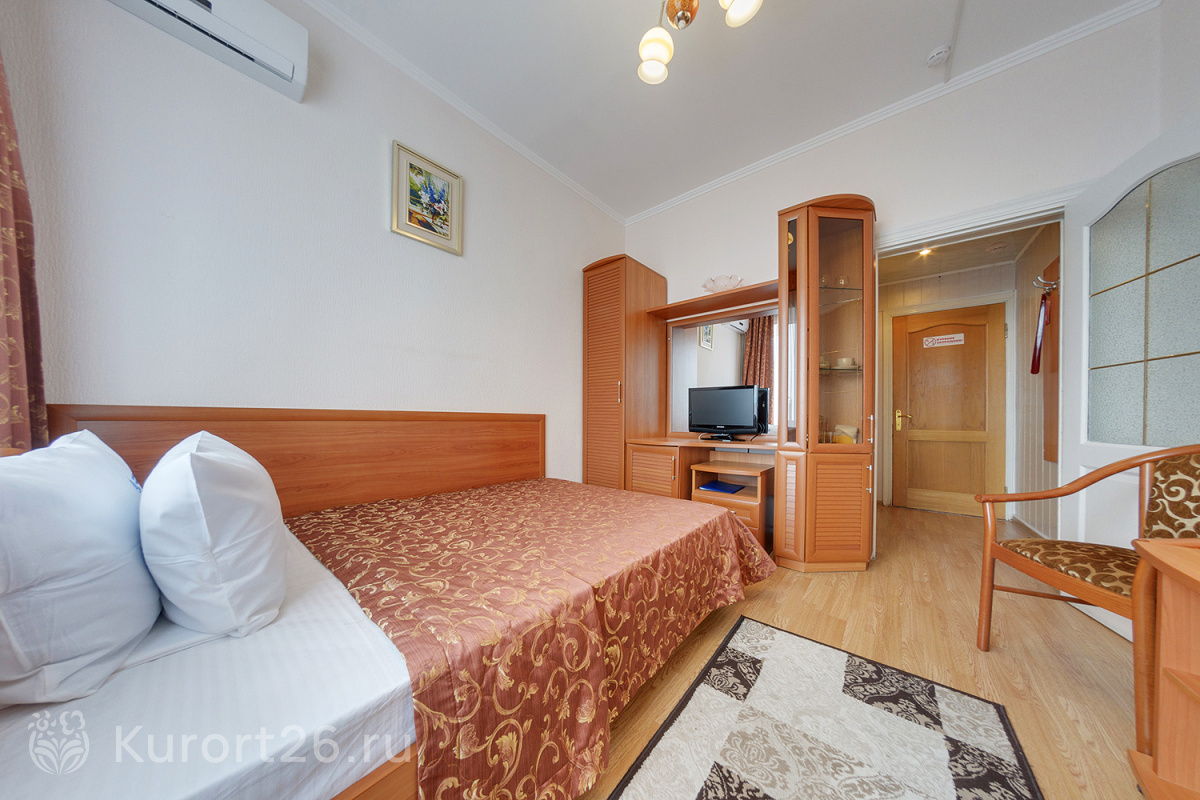 Номера с видом на лес или панораму Пятигорска. В ясную погоду виден Эльбрус и Кавказский хребет. Есть номера с балконом