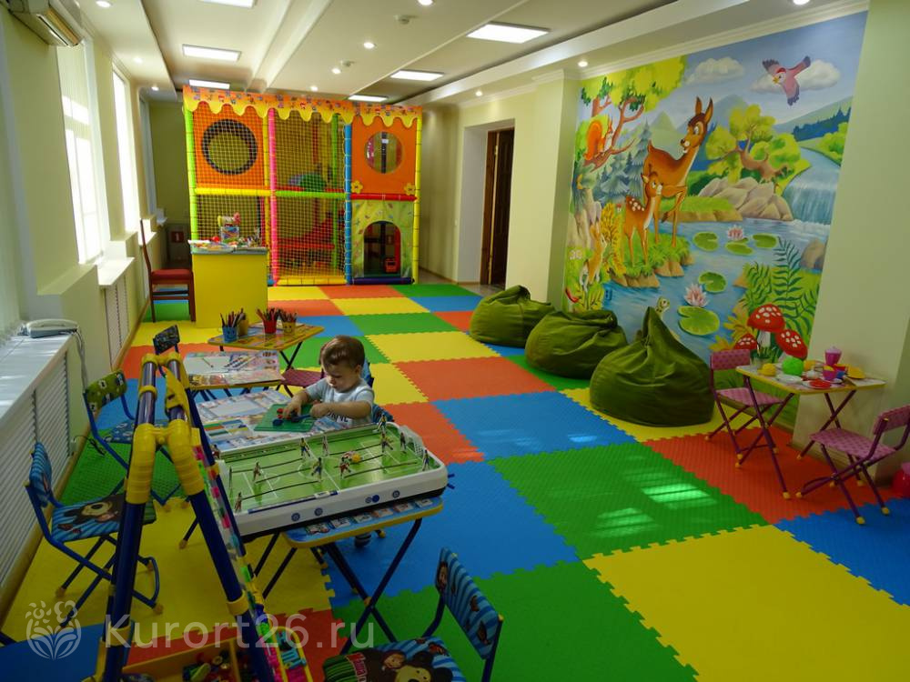 Отдых с детьми от 2 лет, лечение — с 4-х. Ведет прием врач-педиатр. Есть детская комната с воспитателем, детская площадка, еженедельно проходят сеансы кино, квесты, диско-пати, интерактивные программы