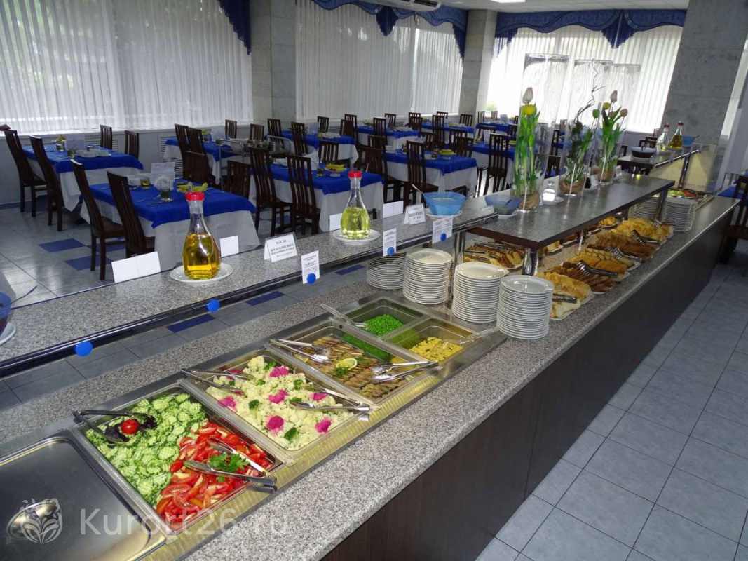 Завтраки «шведский стол», обеды и ужины по системе «меню-заказ». Для ряда категорий номеров предусмотрены отдельные залы питания