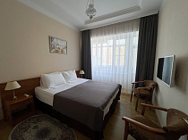 кондиционер, телевизор, чайник, фен, утюг, сейф, телефон, посуда, набор косметических средств, набор полотенец, душевая кабина или ванная, мини-холодильник