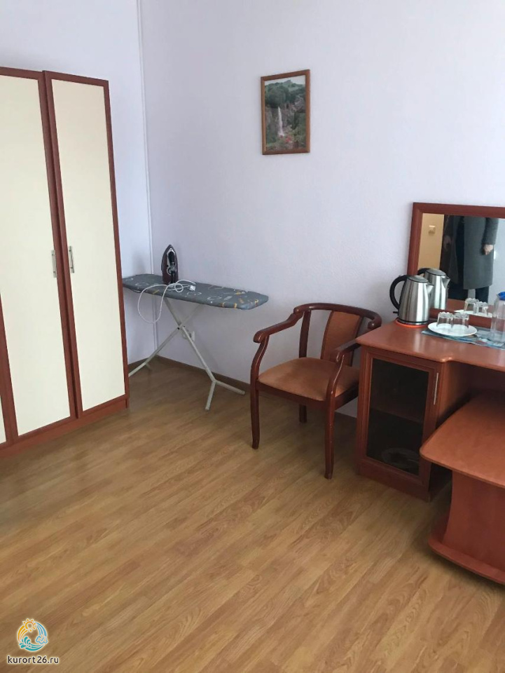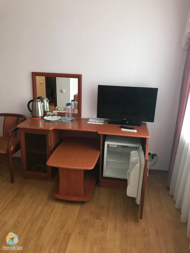 Одноместный однокомнатный номер Стандарт включает односпальную кровать, диван, телевизор, холодильник, фен, чайник, свою ванную комнату с необходимыми принадлежностями. Бесплатный интернет в номере.