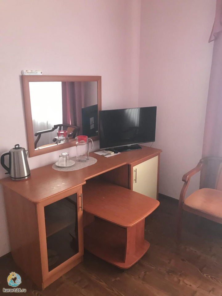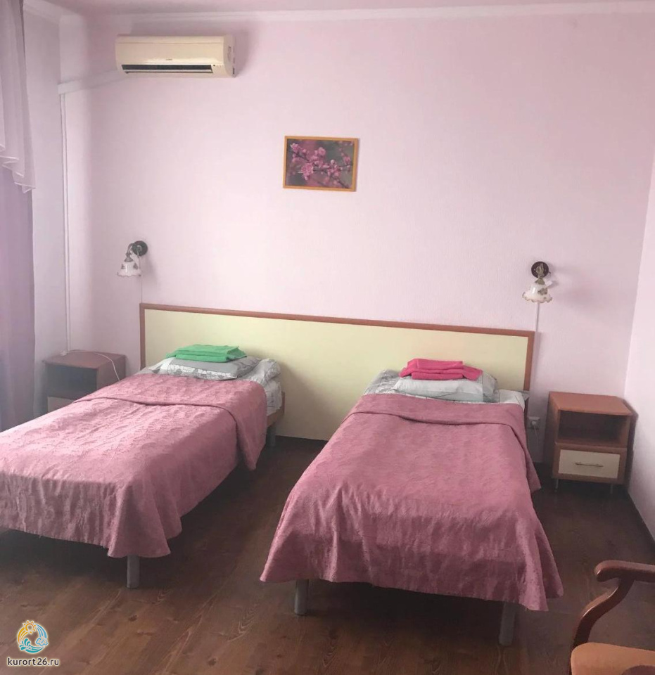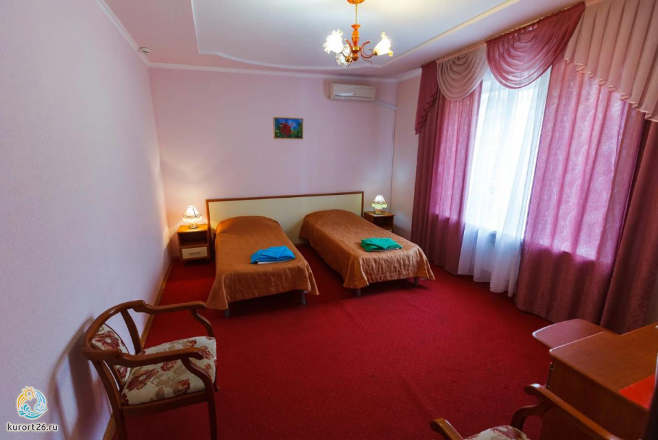 Двухместный однокомнатный номер в корпусе Каштан оснащён телевизором, кондиционером, сейфом, бесплатным интернетом.