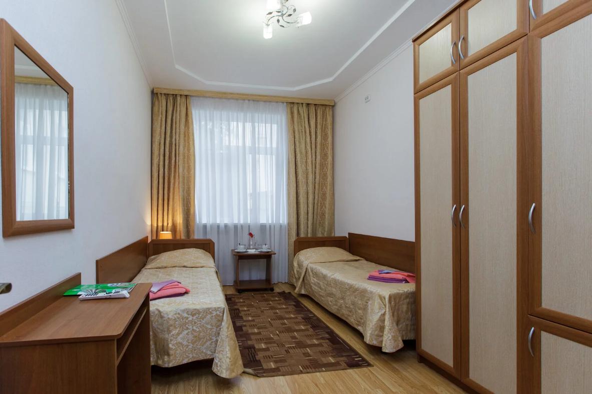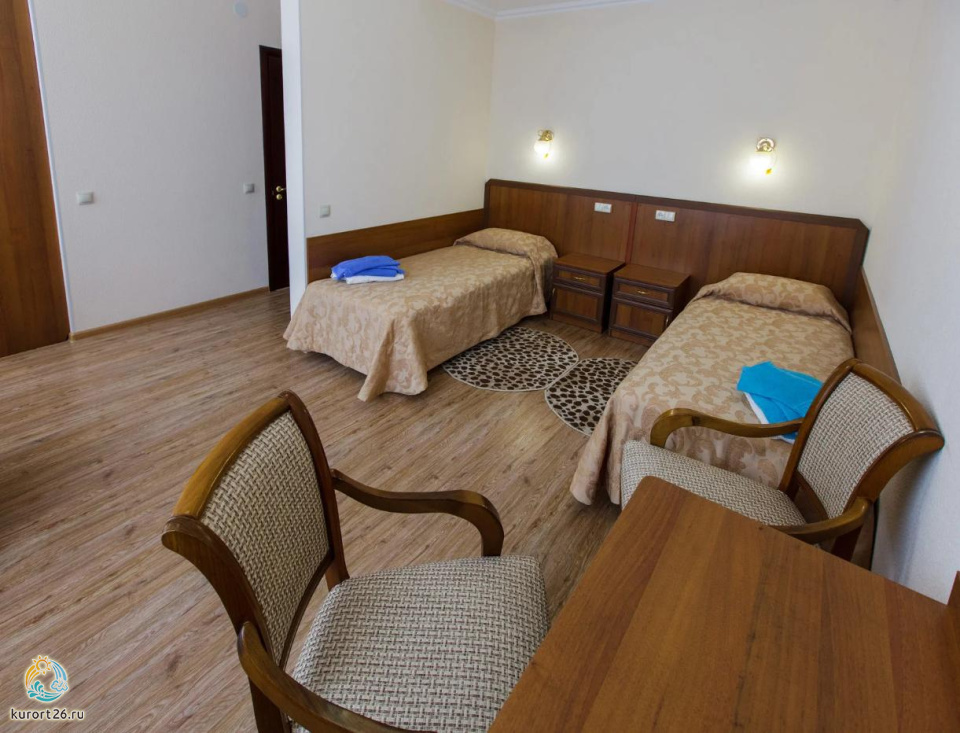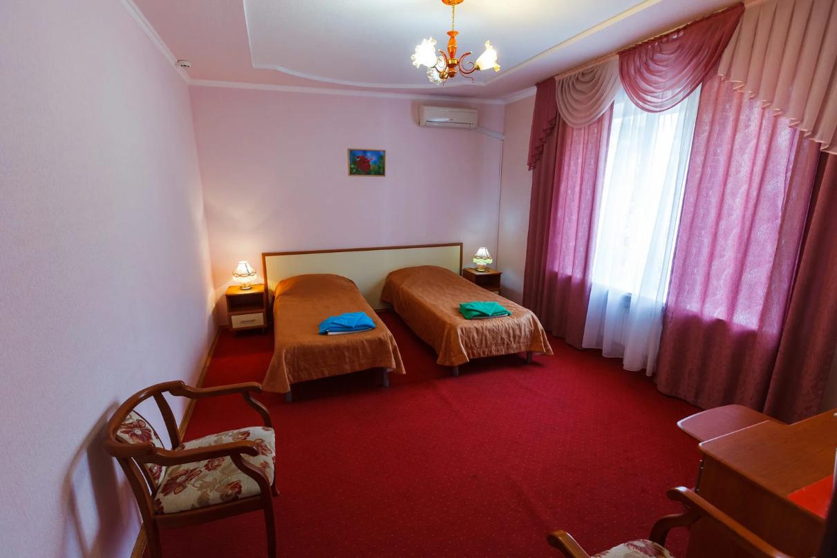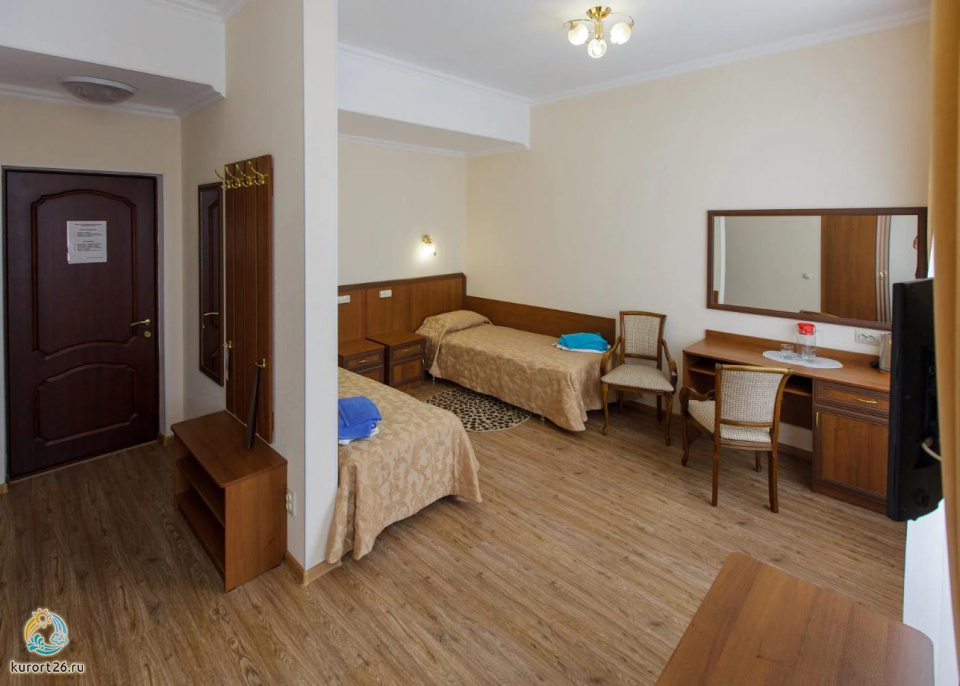 Двухместные стандартные номера (42 номера): две односпальные кровати, холодильник, телевизор, санузел полный - душ, унитаз, раковина. Имеется балкон с видом на гору Эльбрус и парк Цветник.