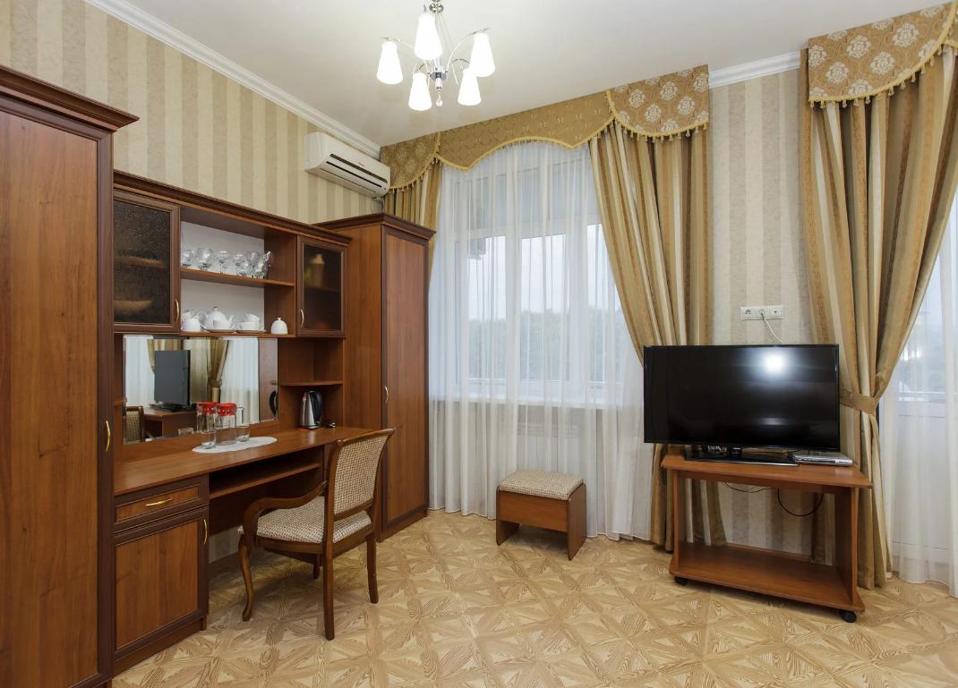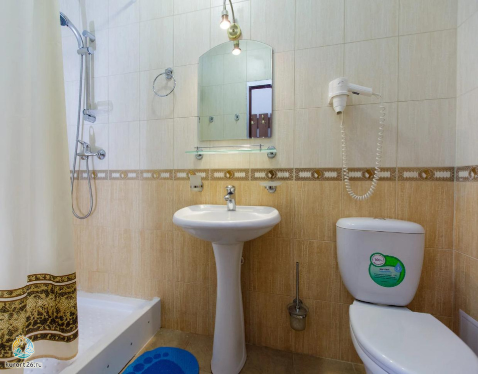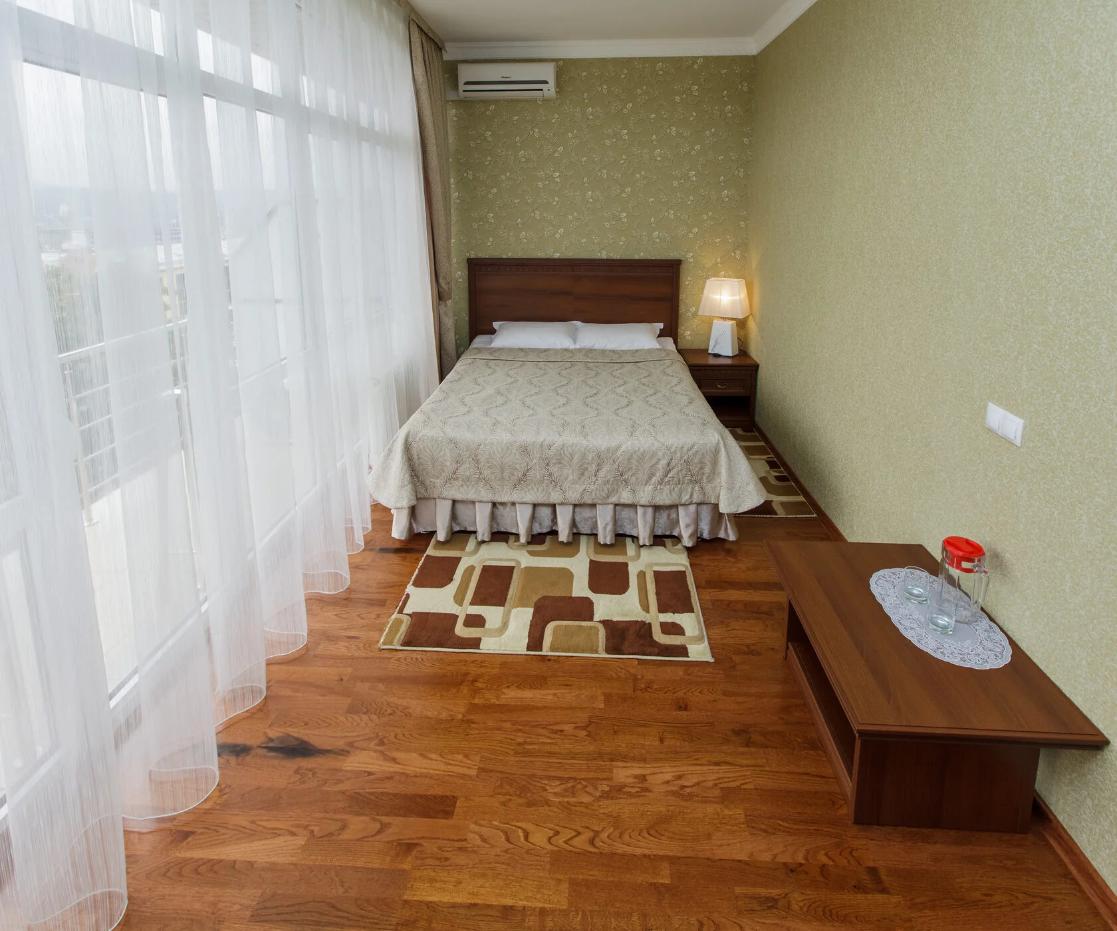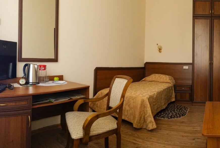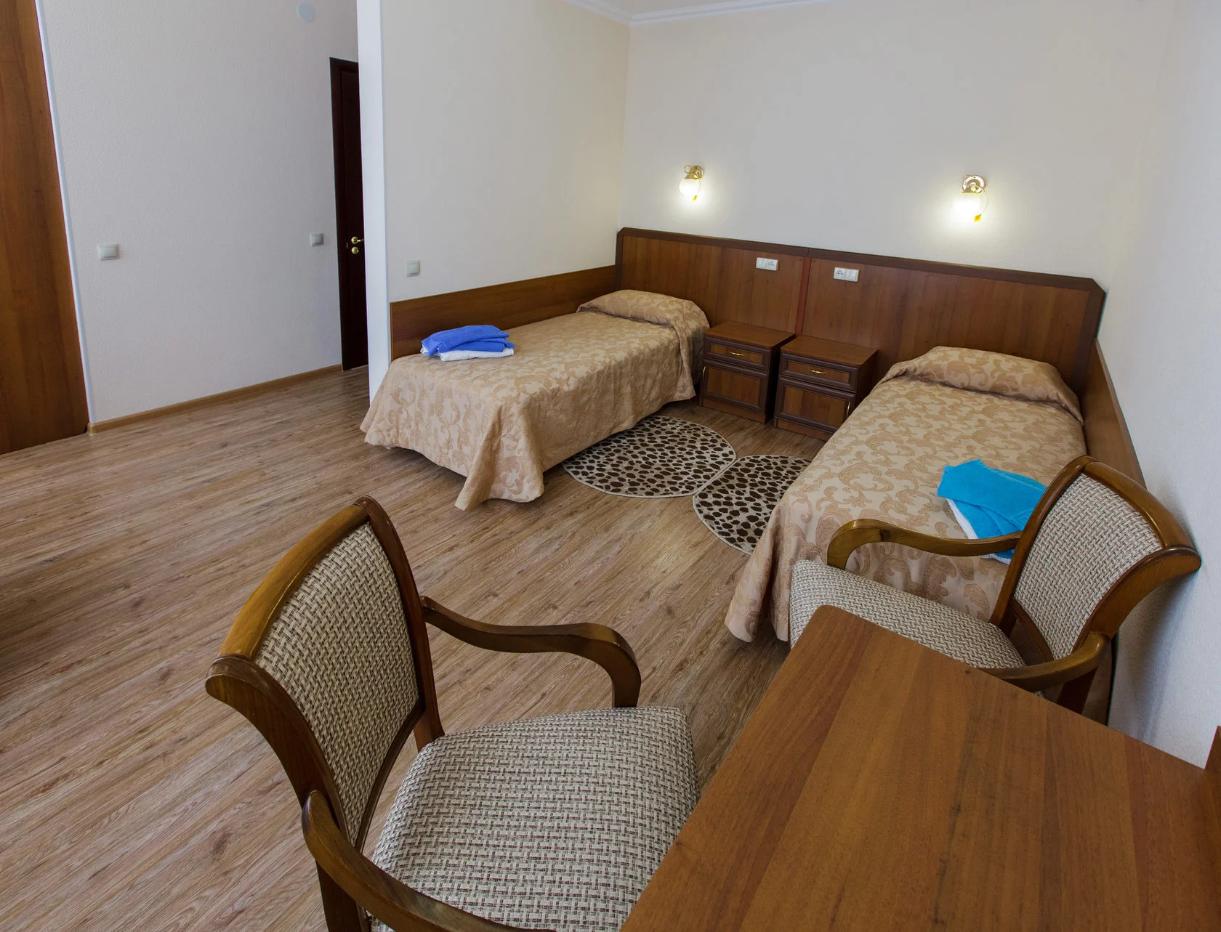 Двухместные стандартные номера (42 номера): две односпальные кровати, холодильник, телевизор, санузел полный - душ, унитаз, раковина. Имеется балкон с видом на гору Эльбрус и парк Цветник.