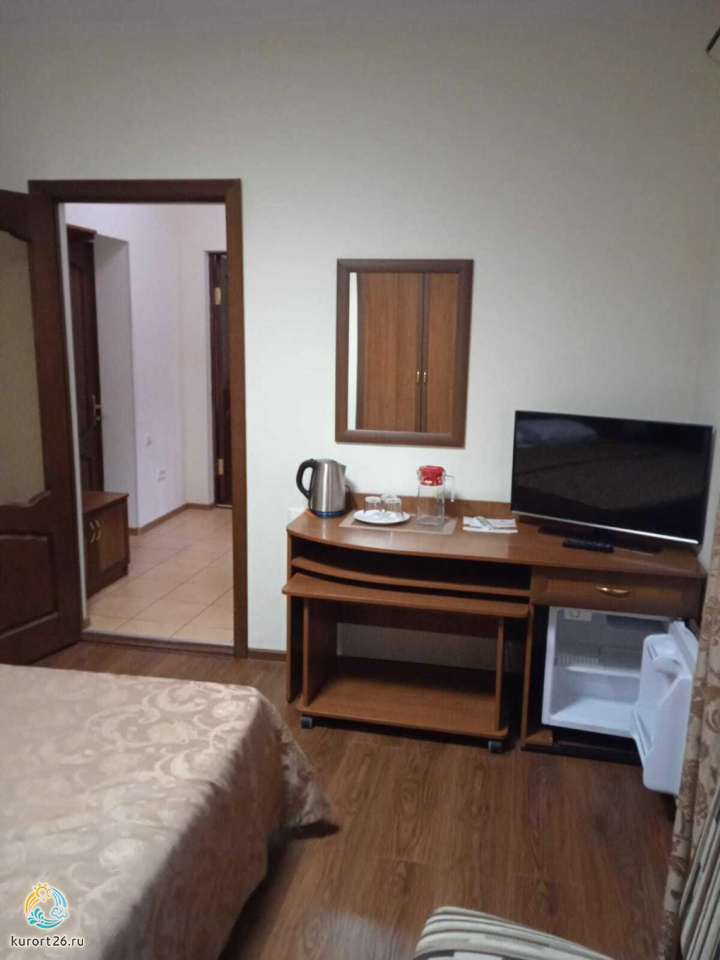 холодильник, телевизор, фен, сейф, интернет в номере, санузел с душевой кабиной, ванные принадлежности, двуспальная кровать, электрочайник, сплит-система, посуда