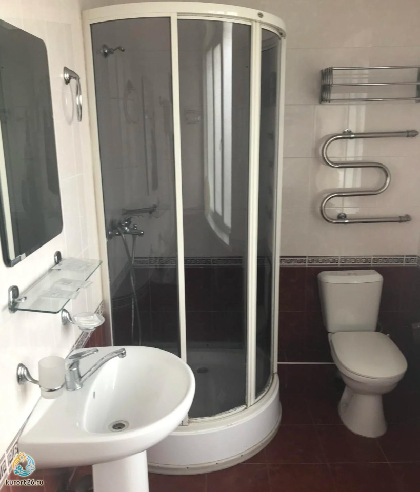 холодильник, телевизор, фен, набор чайной посуды, сейф, душ, санузел с душевой кабиной, ванные принадлежности, электрочайник, сплит-система, две односпальные кровати