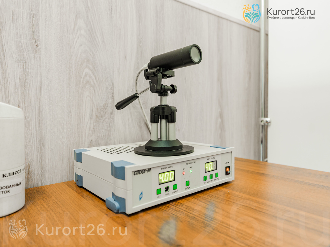 Собственная клинико-биохимическая лаборатория и диагностическое оборудование позволяют пройти полное обследование на базе санатория. Проводятся специализированные физиопроцедуры в урологии и гинекологии, занятия ЛФК в бассейне и тренажёрном зале с аппаратами механотерапии.