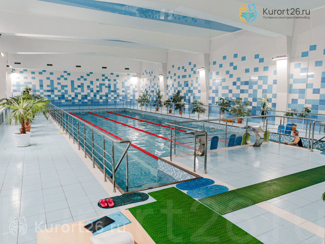 - Большой плавательный бассейн 20*8 м с каскадом. Проводятся занятия ЛФК в воде и аквааэробика
