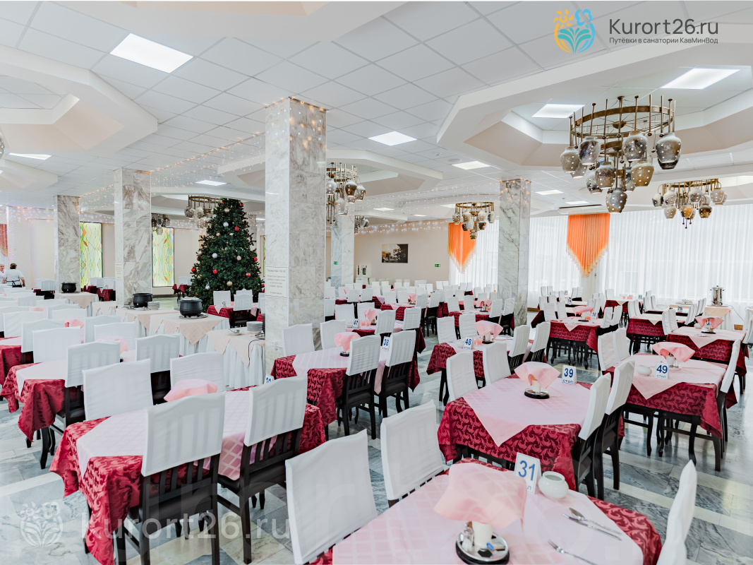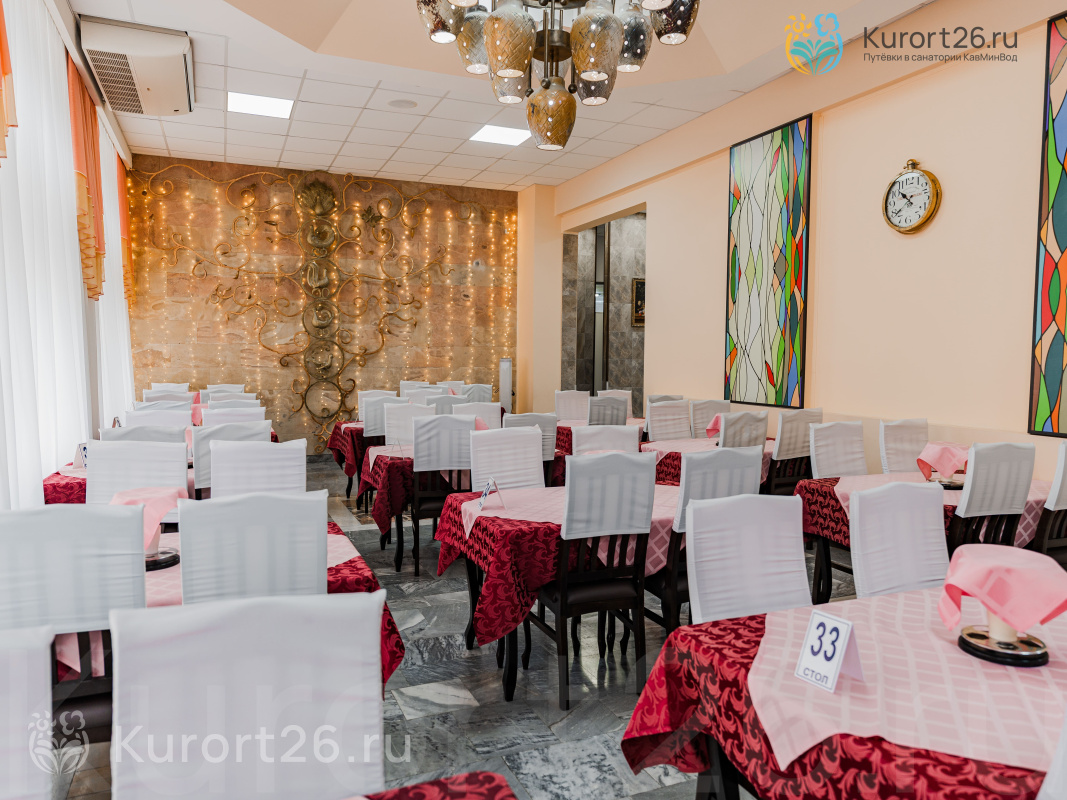 Питание контролируется опытным диетологом, что гарантирует соответствие лечебным рекомендациям. Столовый зал вмещает более 300 человек, здесь создана уютная атмосфера для комфортного приёма пищи.