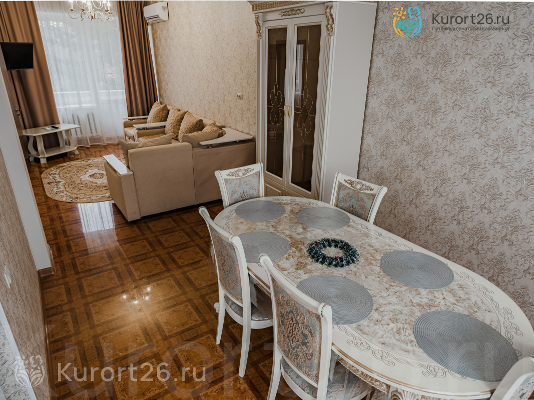 - «Люкс» — двухкомнатный номер с улучшенной отделкой, уютной спальней и просторной гостиной.