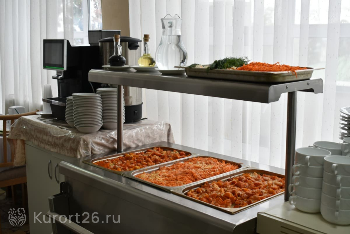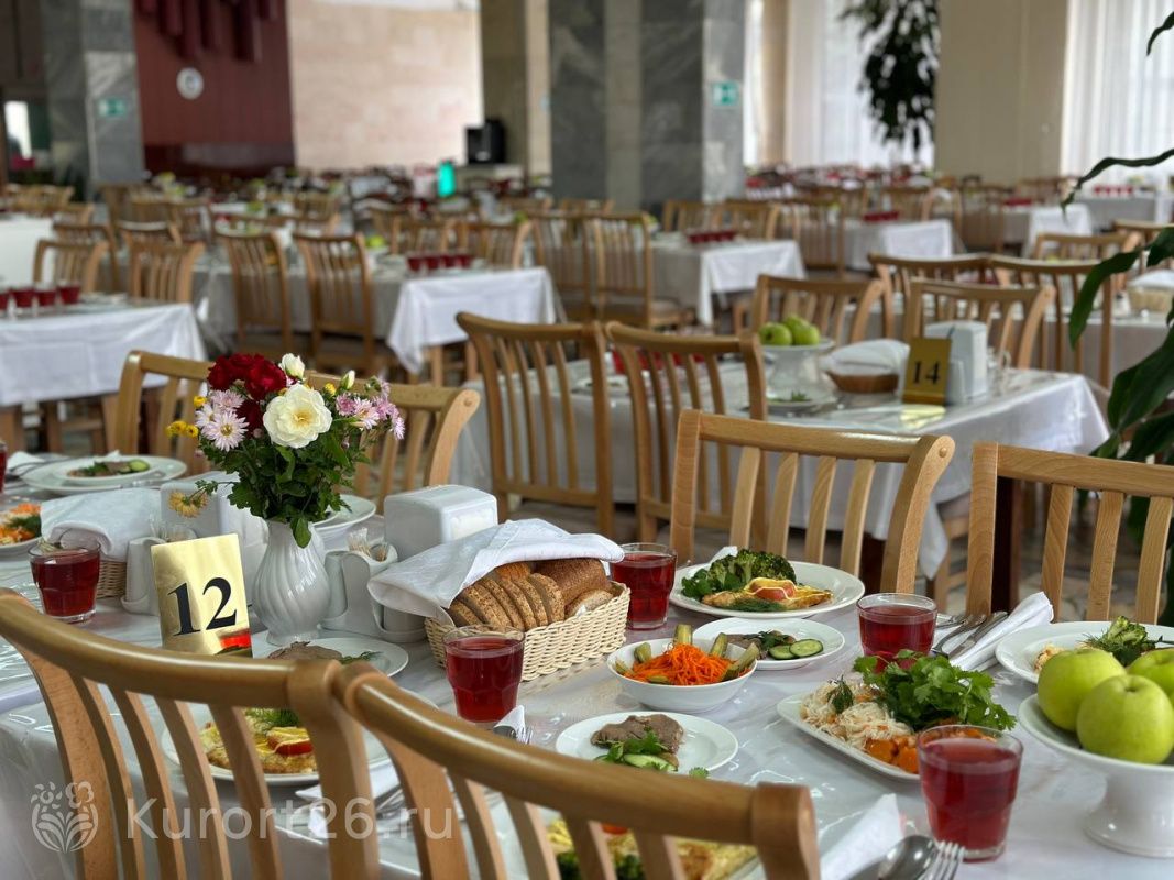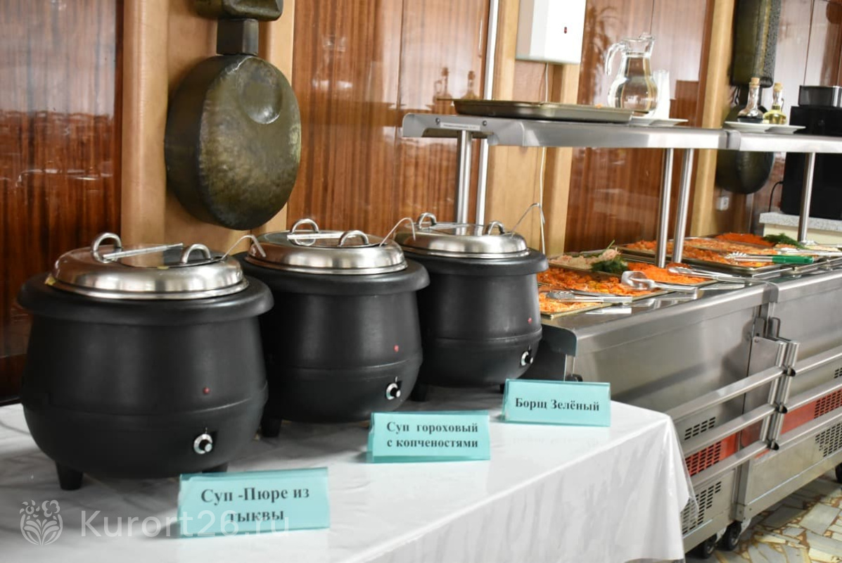 В санатории просторная столовая на 280 мест. В зале есть микроволновки. Гостям, которые выезжают на экскурсии, предоставляют ланчбоксы с перекусом.