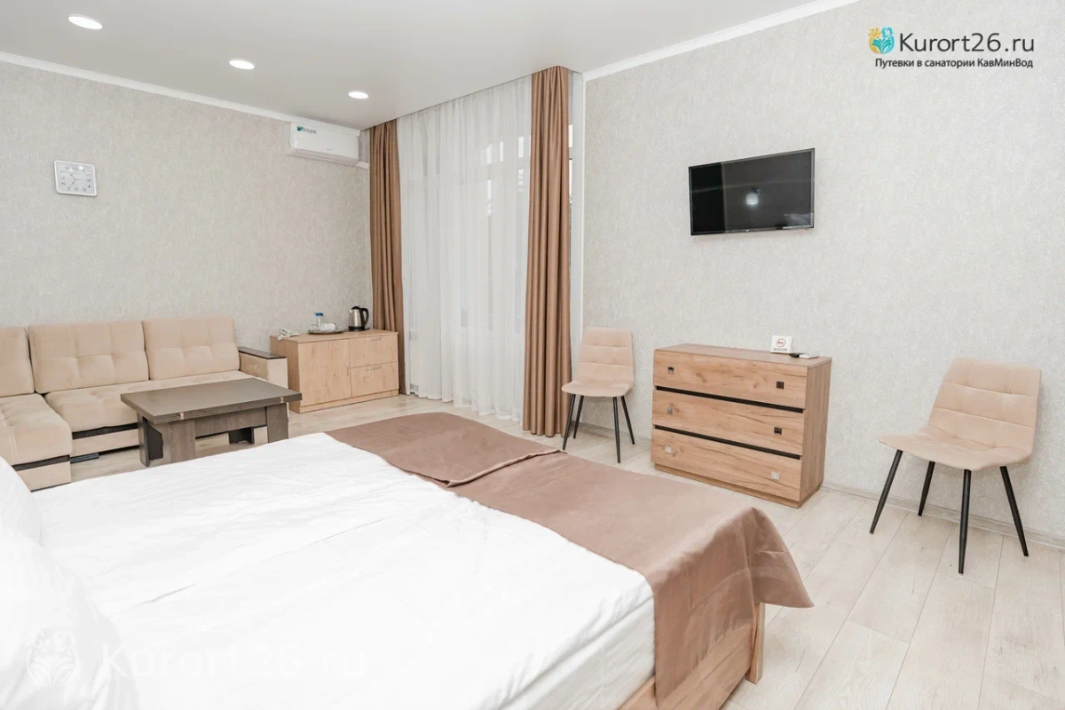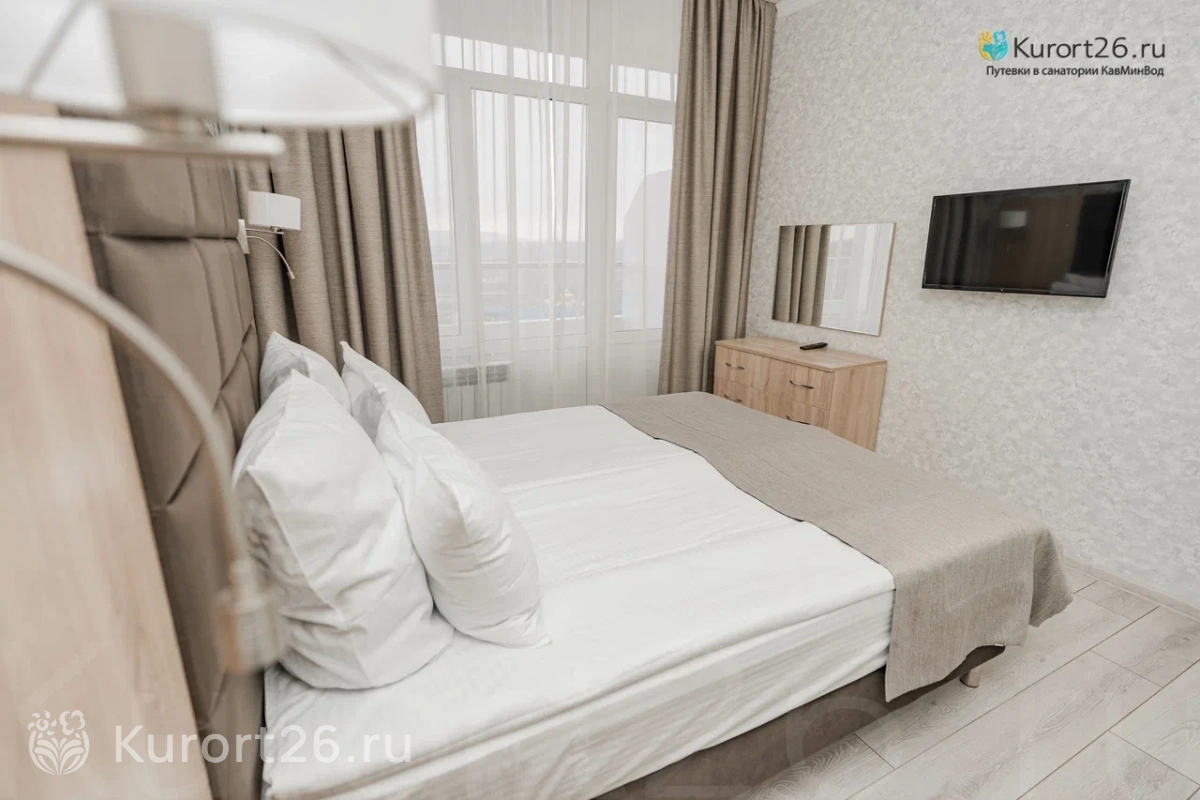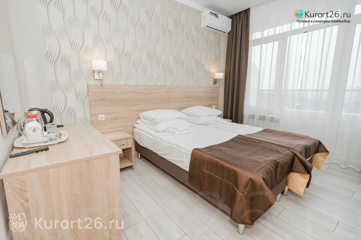 В санатории «Тарханы» вас разместят в уютном номере, где есть всё необходимое, чтобы чувствовать себя как дома. В каждом номере есть лоджия, с которой открывается прекрасный вид на Главный Кавказский хребет.