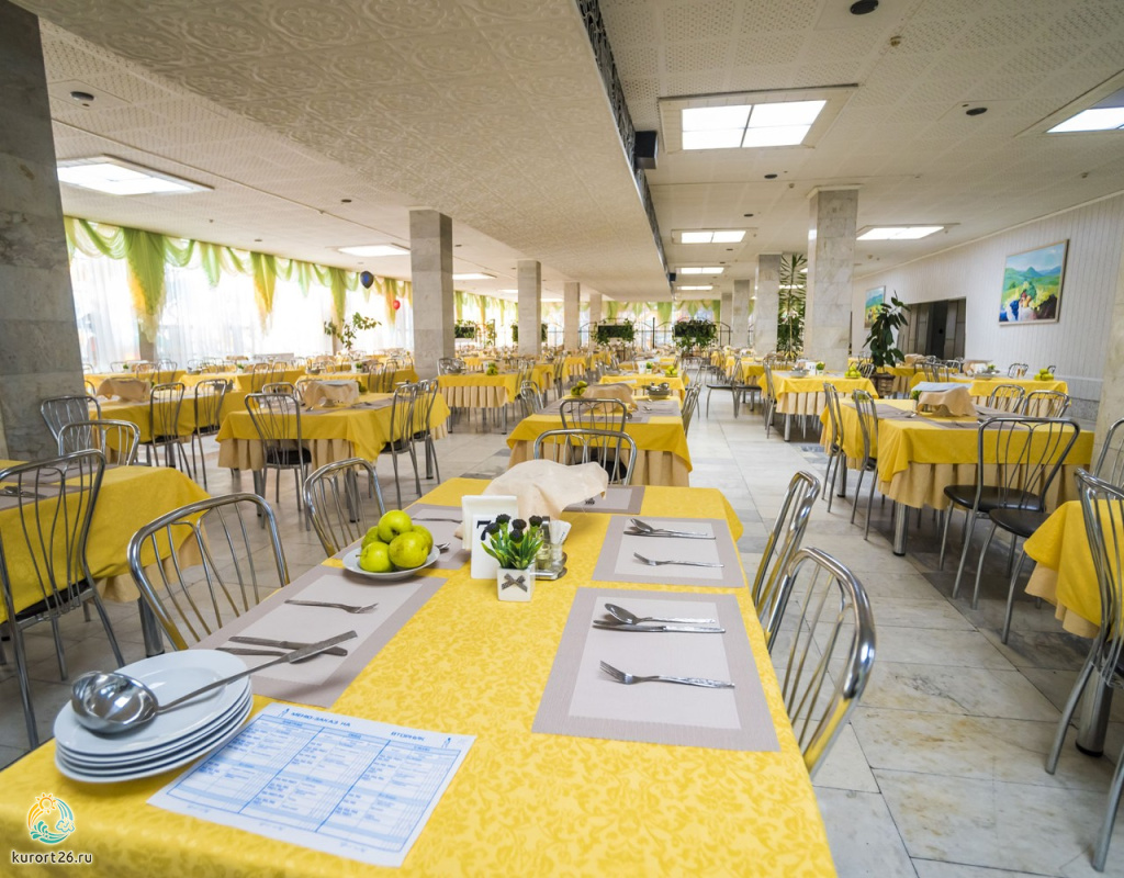 В санатории «Зори Ставрополья» вас будут кормить 3 раза в день. Система питания — заказ блюд заранее по меню. Питание диетическое, в список диет включены 15 стандартных диет по Певзнеру: щадящие, высокобелковые и низкобелковые, низкокалорийные, диеты для больных сахарным диабетом, страдающих аллергией или болезнями суставов и другие.