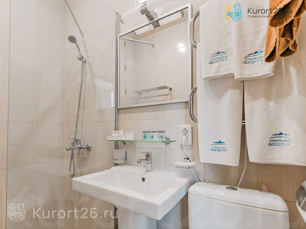 Санаторий «Бештау» предоставляет номера следующих категорий: 1- и 2-местные «Стандарты», семейные «Стандарты» и «Люксы», а также 2-комнатные номера повышенной комфортности «Сюит».