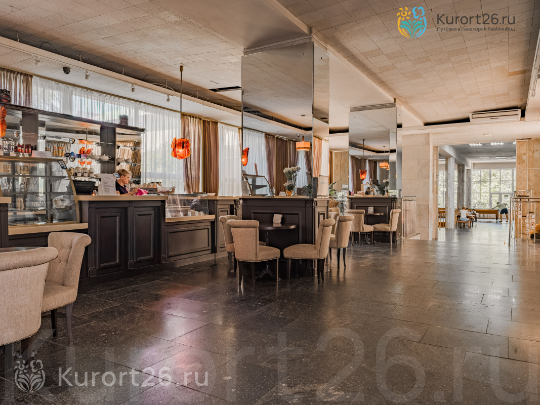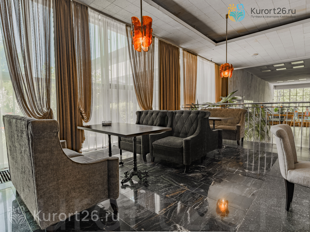 В лобби-баре санатория подают свежие десерты, готовят ароматный кофе и заваривают полезные чаи из горных трав Кавказа.