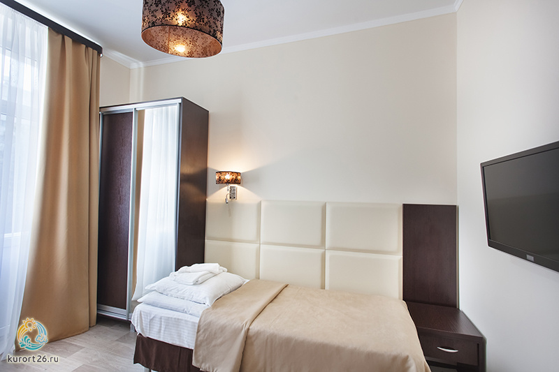 холодильник, телевизор, фен, балкон, санузел с душевой кабиной, ванные принадлежности, прикроватные тумбочки, односпальная кровать: 2 шт, шкаф-купе